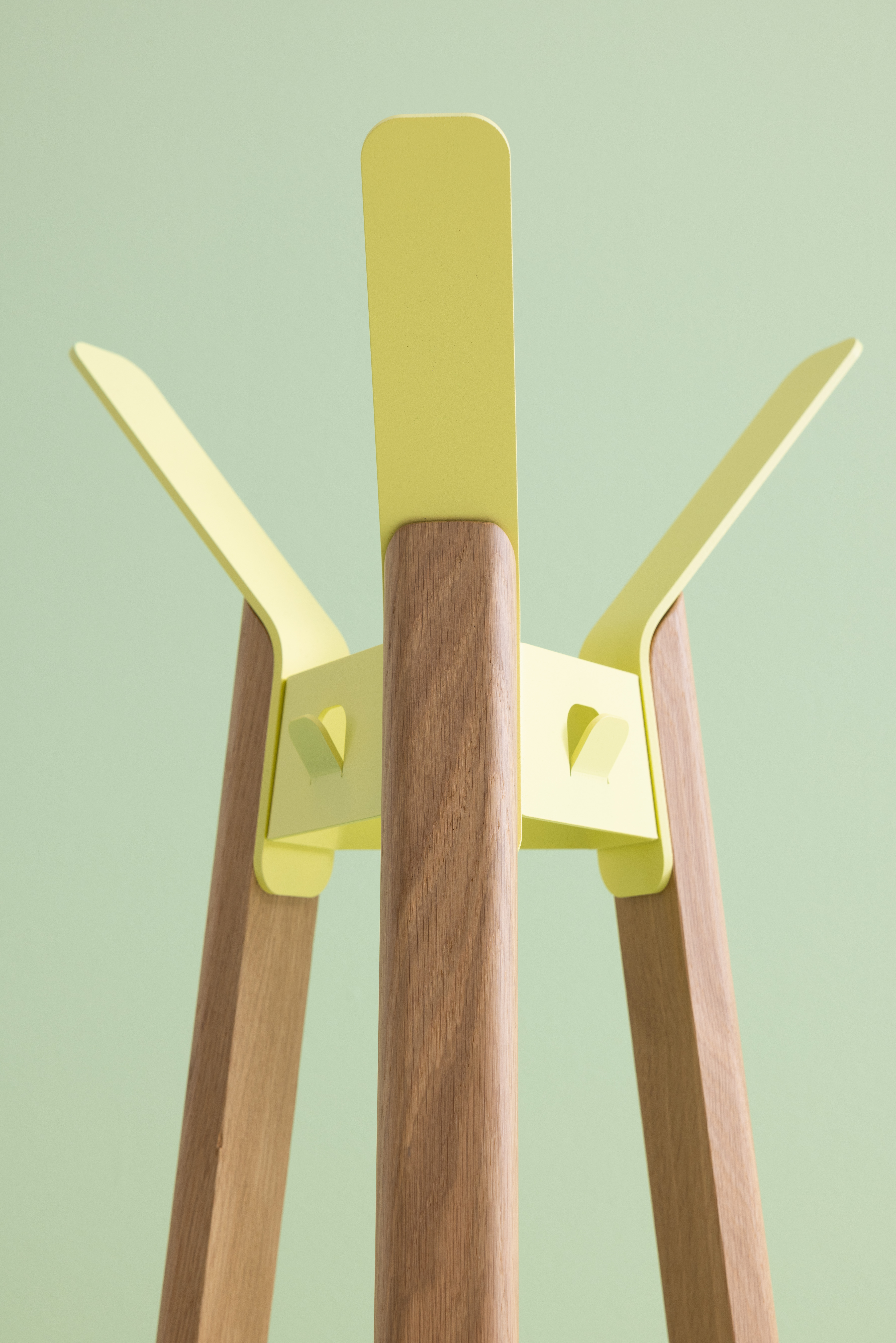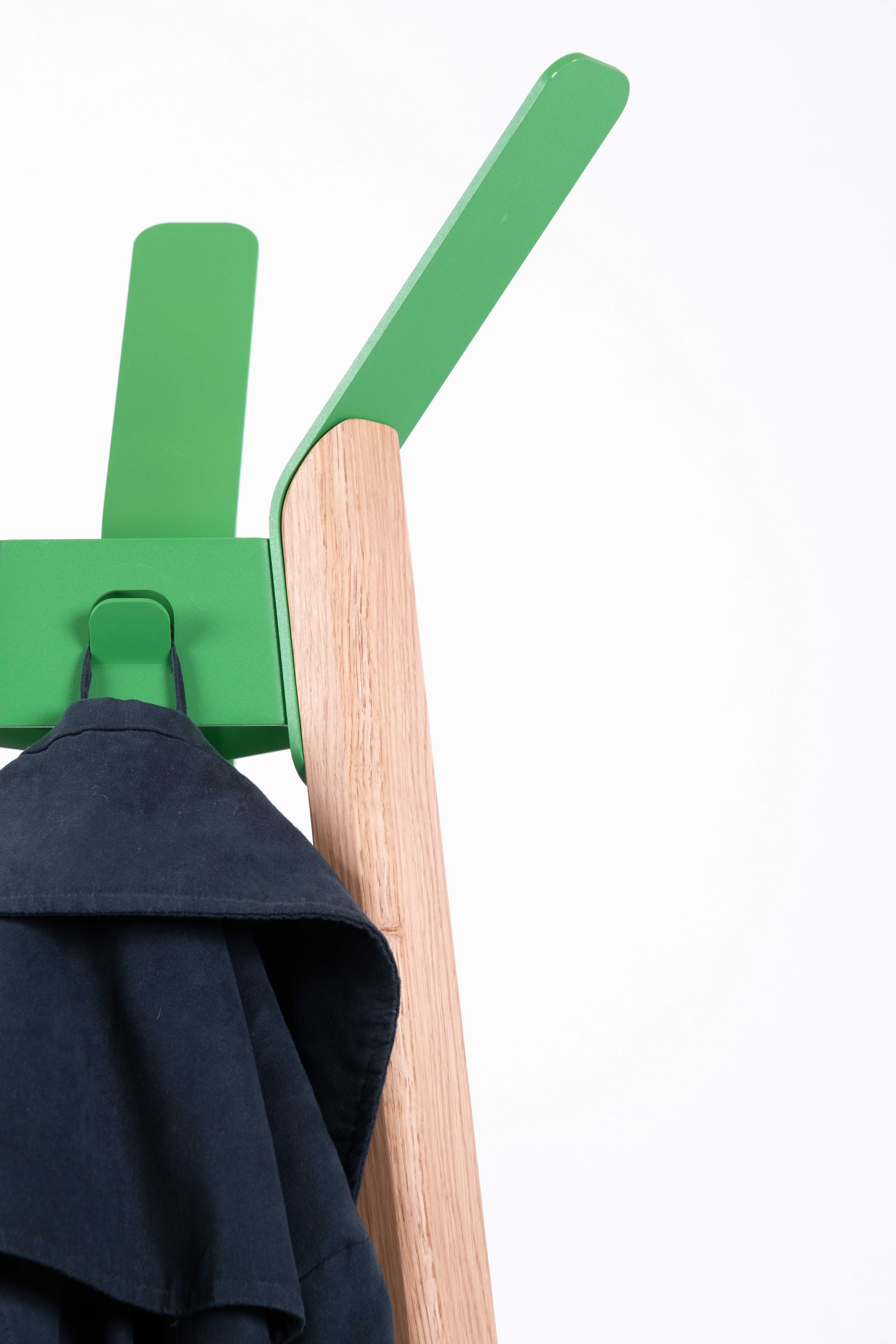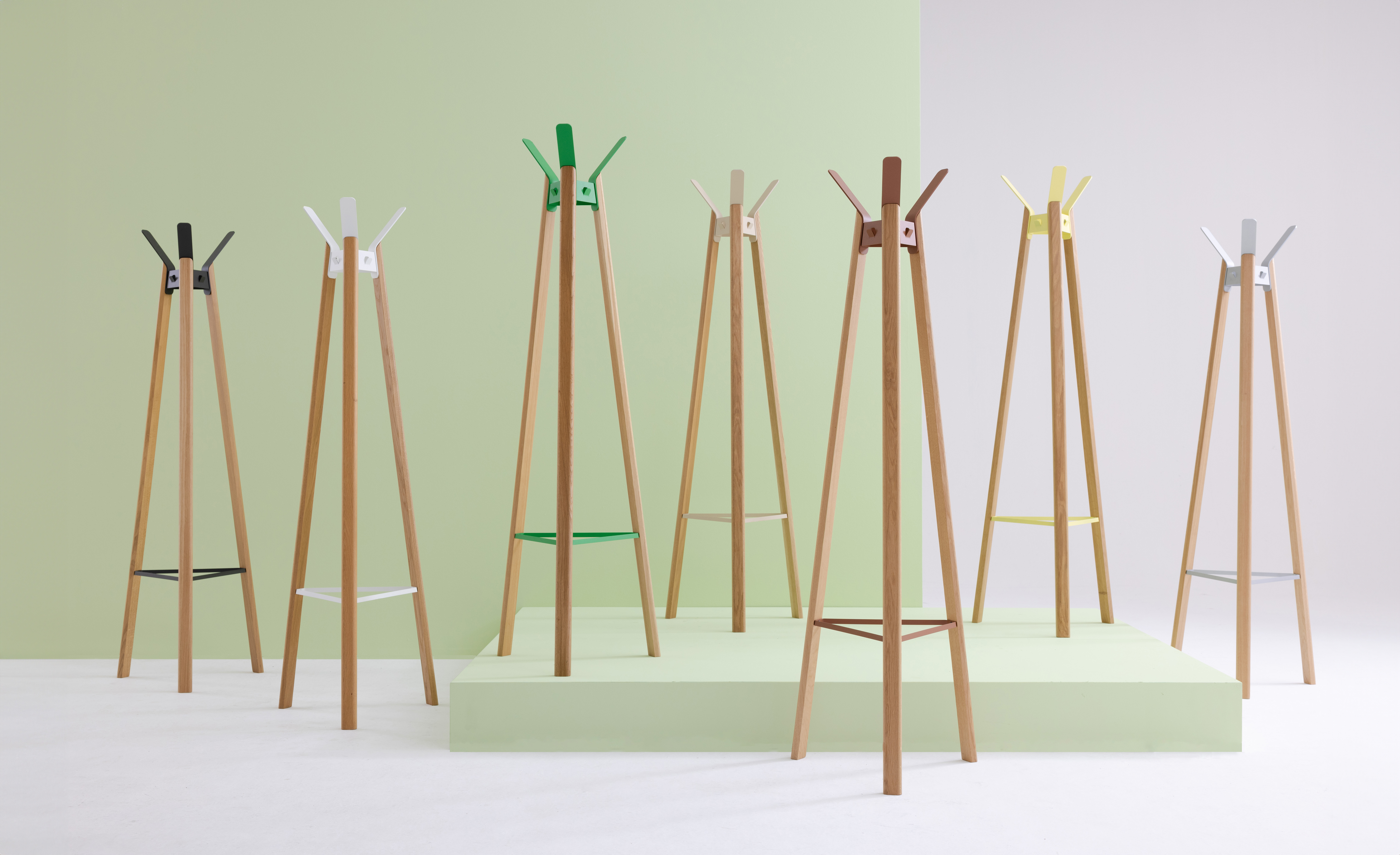 Fuse vypráví o spojení krásně vytvořených sloupků z dubu s pečlivě zaoblenými háčky z oceli. Fuse má také velkou kapacitu: kabáty lze zavěsit na velké háčky na horní straně stojanů nebo na menší háčky mezi nimi. Barevné kombinace umožňují použít Fuse v různých interiérech, od barevných až po minimalistické. Stabilní stojan s pevným vzhledem.