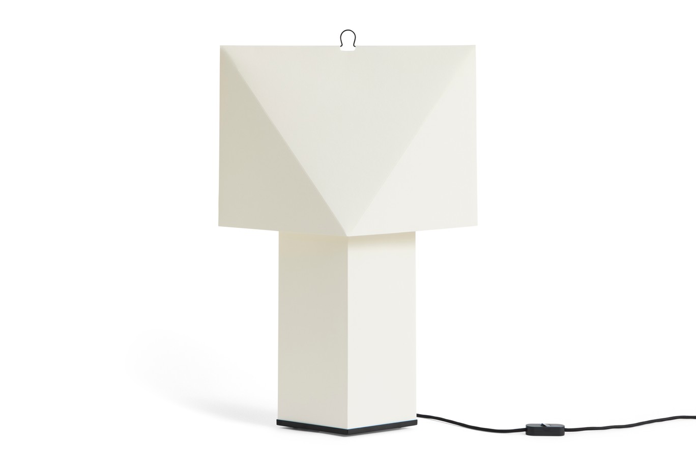 Aplat Table Lamp je lehká, sochařsky pojatá lampa vyrobená převážně ze skládaného papíru. Díky plochému balení si ji uživatel sestavuje sám – přesné linie a úhly postupně vytvářejí objem a dávají vzniknout jednoduché, grafické formě.