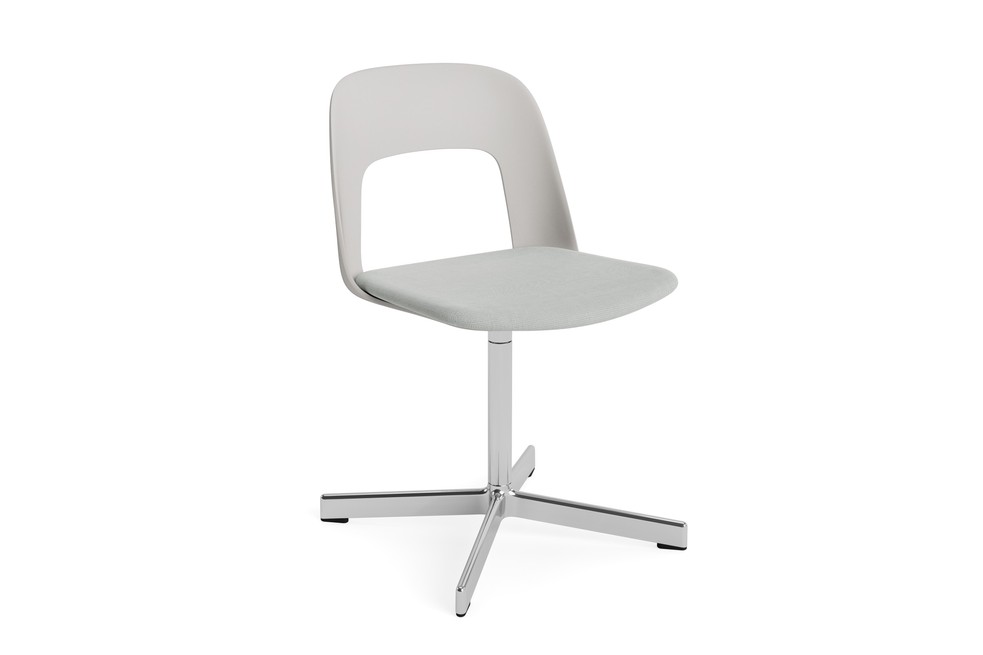 Layout Chair nabízí flexibilní a inovativní design vycházející z důrazu na komfort, funkčnost a cirkularitu. Charakteristickým prvkem je otvor v opěradle, který zvyšuje pohodlí při sezení a zároveň dodává židli vizuální lehkost a transparentnost.