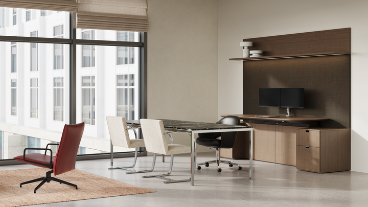 • Pokrývá potřeby návrhu soukromých kanceláří díky výraznému designovému jazyku, propracovaným detailům a flexibilitě umožňující vytvářet klasické i architektonicky výrazné prostory.