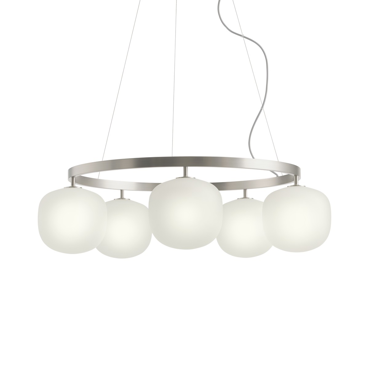 Lampa Rime Rail nebo lustr Chandelier vytváří rytmickou hru světla propojením lamp Rime do zvolené kompozice. Jejích jemně rozptýlený svit a rovnoměrné osvětlení přenášejí pozornost napříč prostorem a vyvažují funkci s atmosférou. Ručně foukané sklo a odolná práškově lakovaná lišta či kruh dodávají hloubku i hmatatelnou kvalitu, díky čemuž se stává světlo vytříbeným a přesto výrazným prvkem nad jídelními stoly, kuchyňskými ostrůvky i v zasedacích místnostech.
