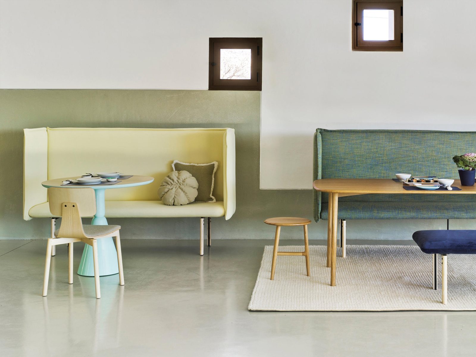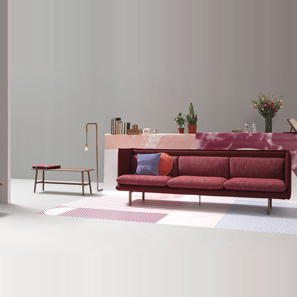 REW je vysoce univerzální řada vhodná pro různé projety: odpočinek (rest), práci (work) i jídlo (eat). Kolekce zahrnuje židle, lavici, pohovky, nově i několik variant polštářů. Nohy jsou vyrobeny z oceli či dřeva a lze je lakovat.