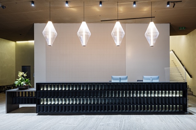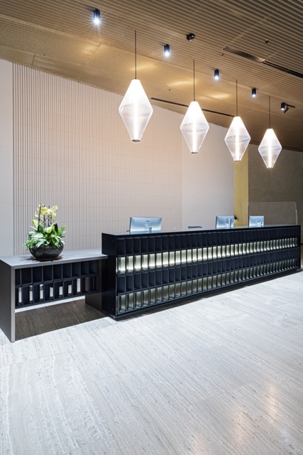 Celý prostor oživují netradiční designové prvky MISTRAL od italské firmy Mutina s dílny designerů Barber & Osgerby. Mutina Mistral je kolekce trojrozměrných architektonických prvků (cihel). Tento design je moderní interpretací tradičních větracích prvků používaných v italské venkovské architektuře, které sloužily k přirozené ventilaci stodol. Zajímavými prvky v prostoru jsou kousky od studia Lyon Béton. Lyon Béton je francouzské designové studio, které se specializuje na výrobu nábytku a doplňků z betonu. Značka přetváří tento surový průmyslový materiál v elegantní a inovativní interiérové prvky, které čerpají inspiraci z brutalismu, Bauhausu a Art Deco.