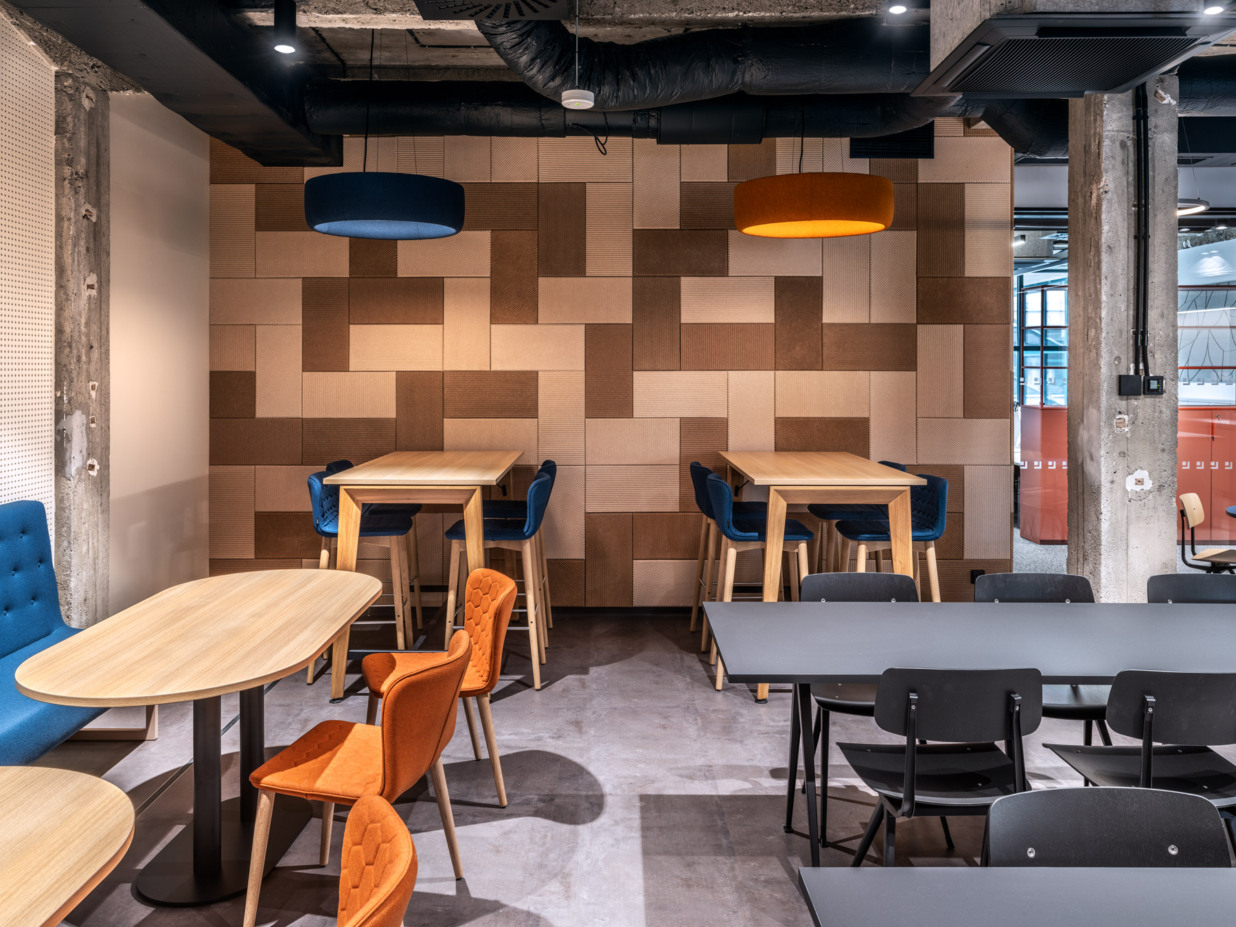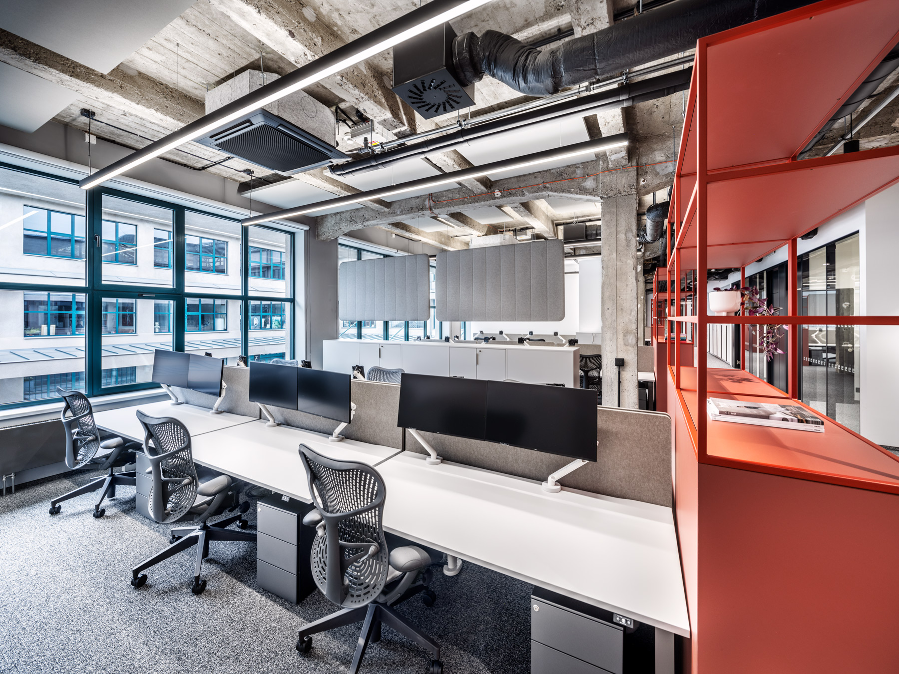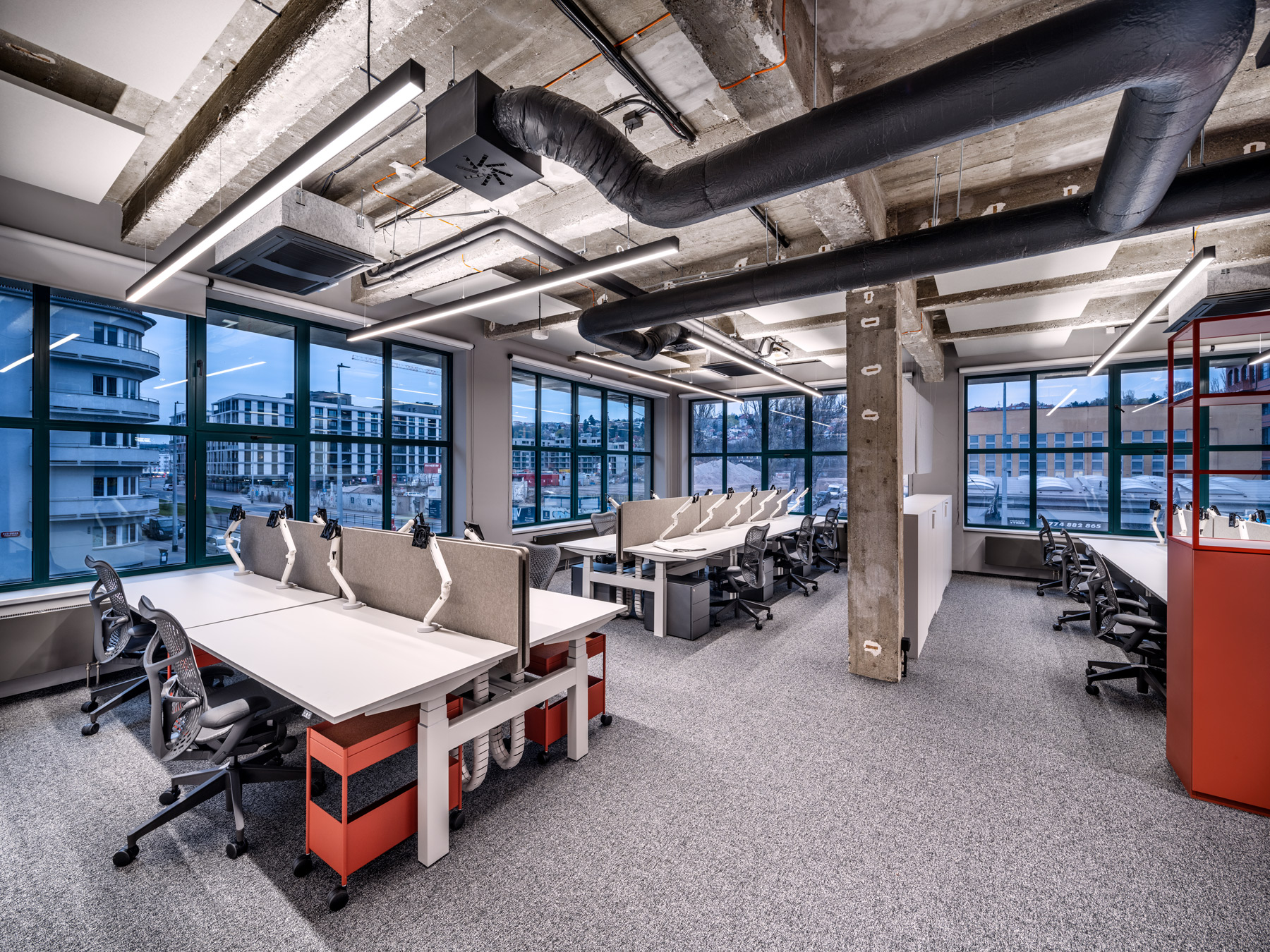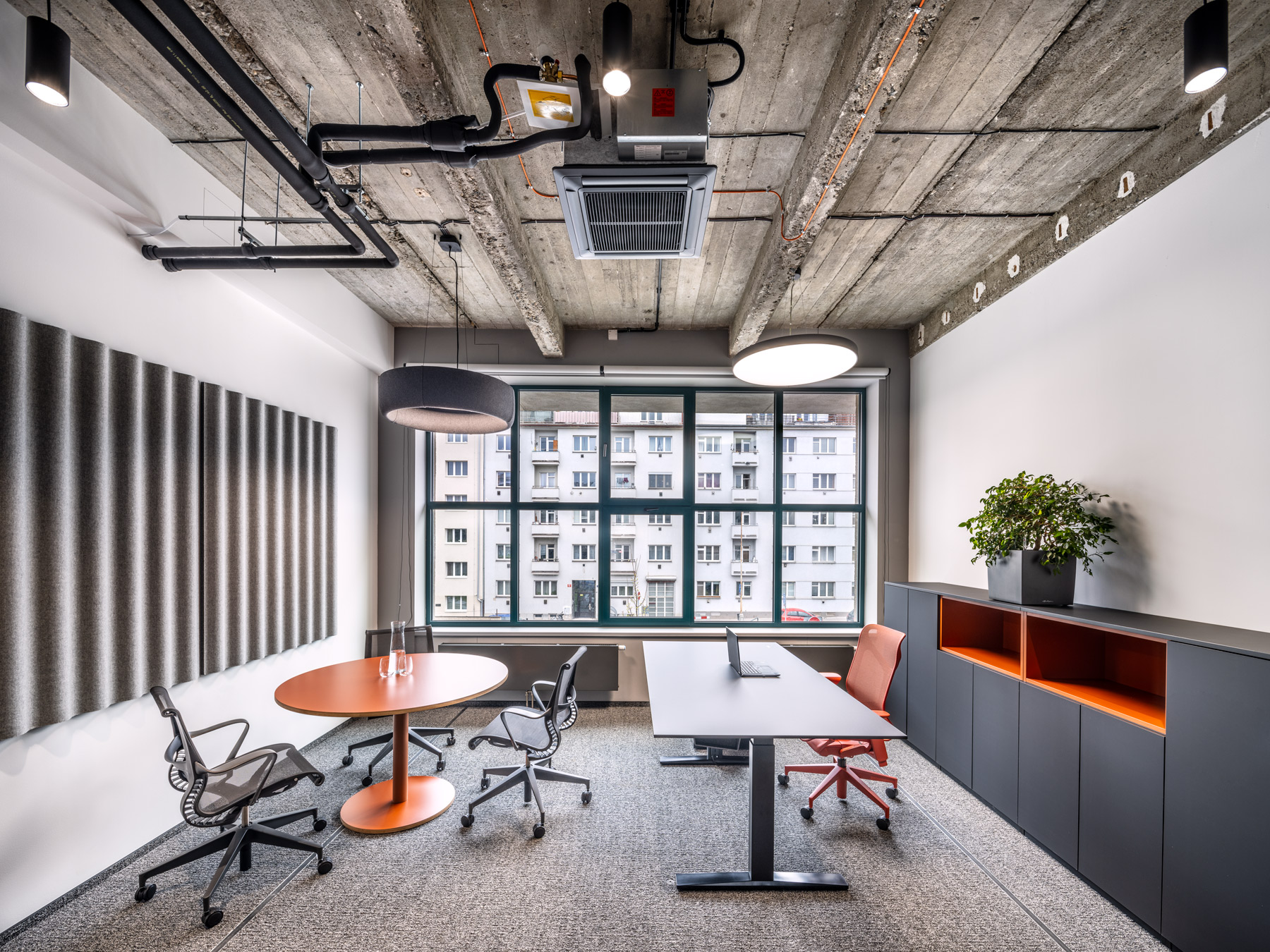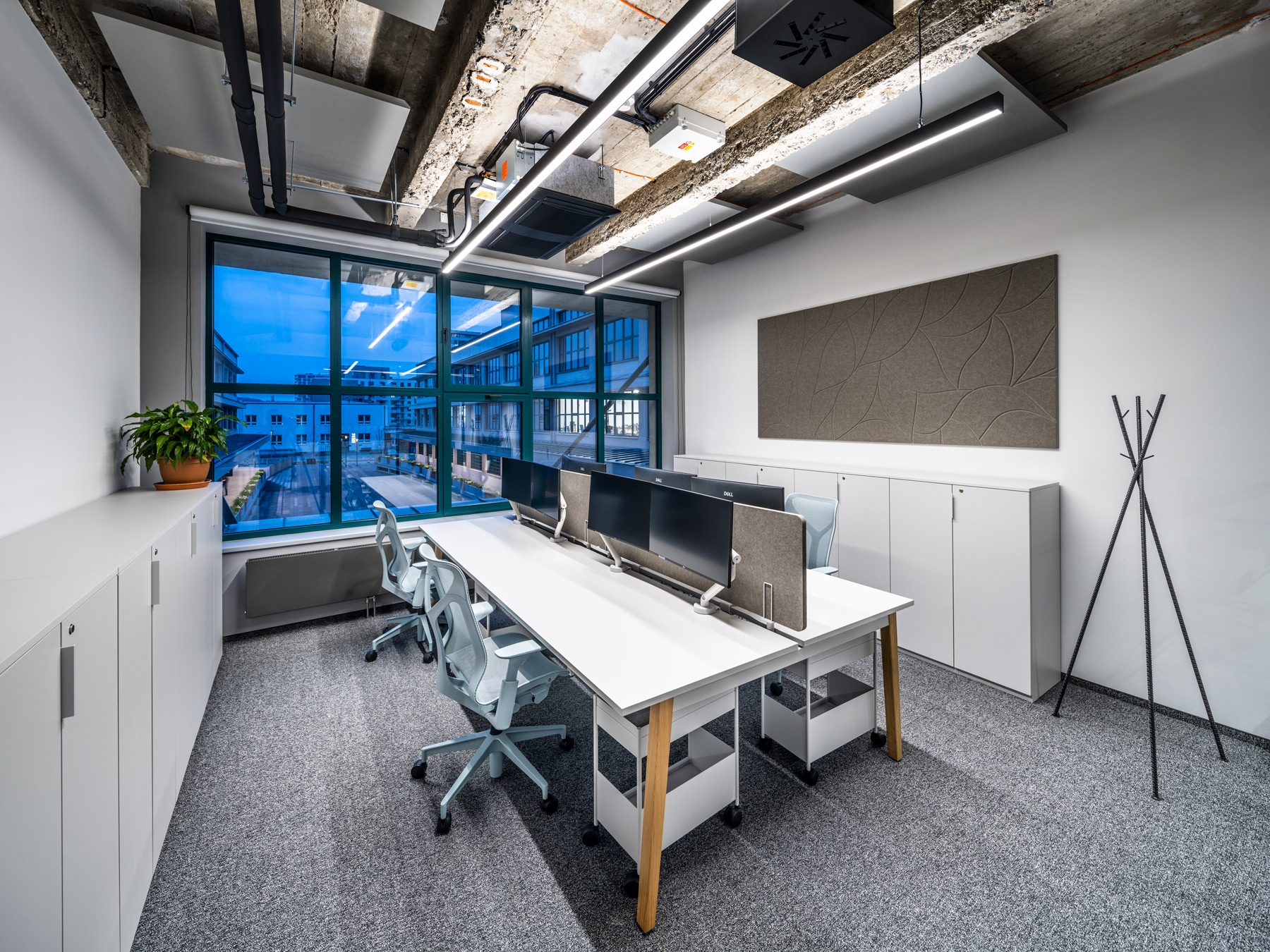 Pro tento výjimečný prostor jsme v cre8 dodali kompletní portfolio mobiliáře a akustiky, které splňuje nejvyšší nároky na design i funkčnost. Skutečnými perlami interiéru jsou ikony značky Knoll – nadčasová křesla Wassily a elegantní stolky Saarinen, které prostoru dodávají nádech klasického modernismu. Ergonomické srdce kanceláře tvoří špičková pracoviště od Herman Miller a CBS. Ty jsou vybavená židlemi Cosm, Mirra a Setu, stoly Nevi Link, mobilními kontejnery OE1 a precizními rameny Flo s chytrými držáky Loop CPU a Micro. Relaxační zóny a komunitní prostory ožily díky soft seatingu a doplňkům od HAY, Enea a Sancal. O nekompromisní ticho na práci se starají budky Framery a pokročilá akustická řešení od EchoJazz a BuzziSpace.