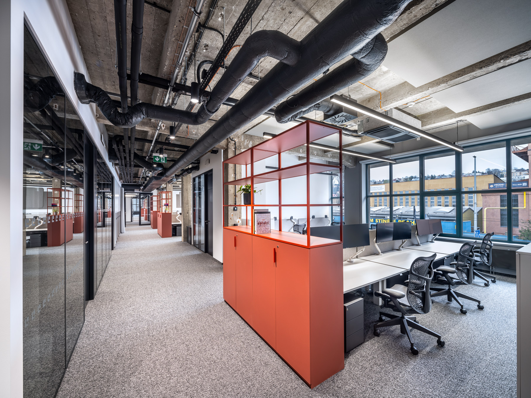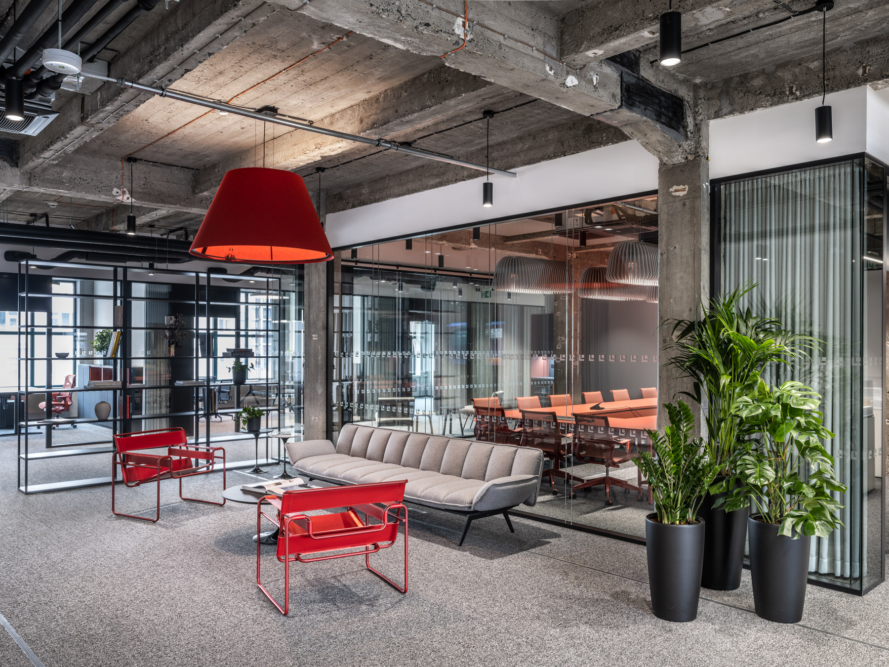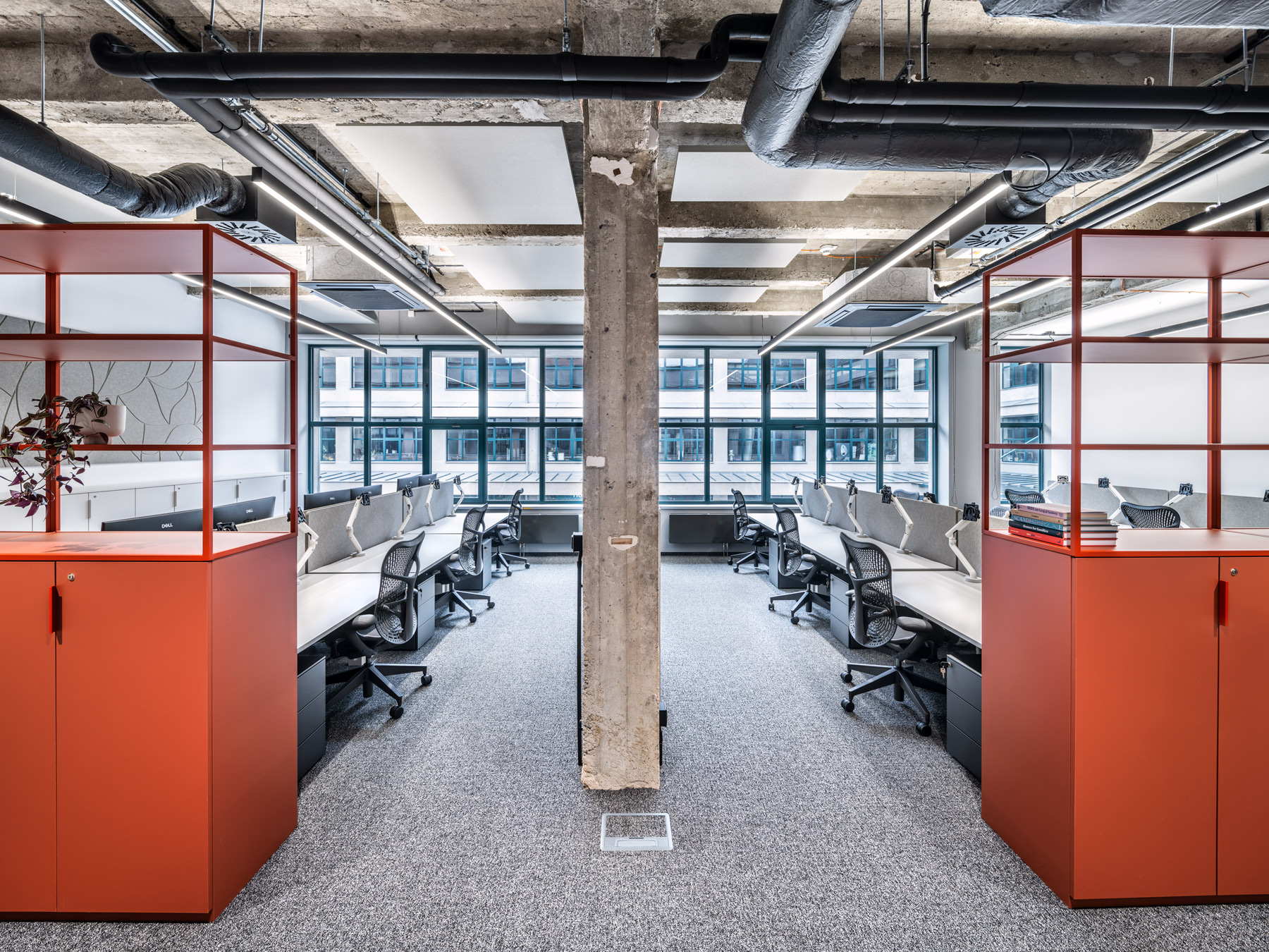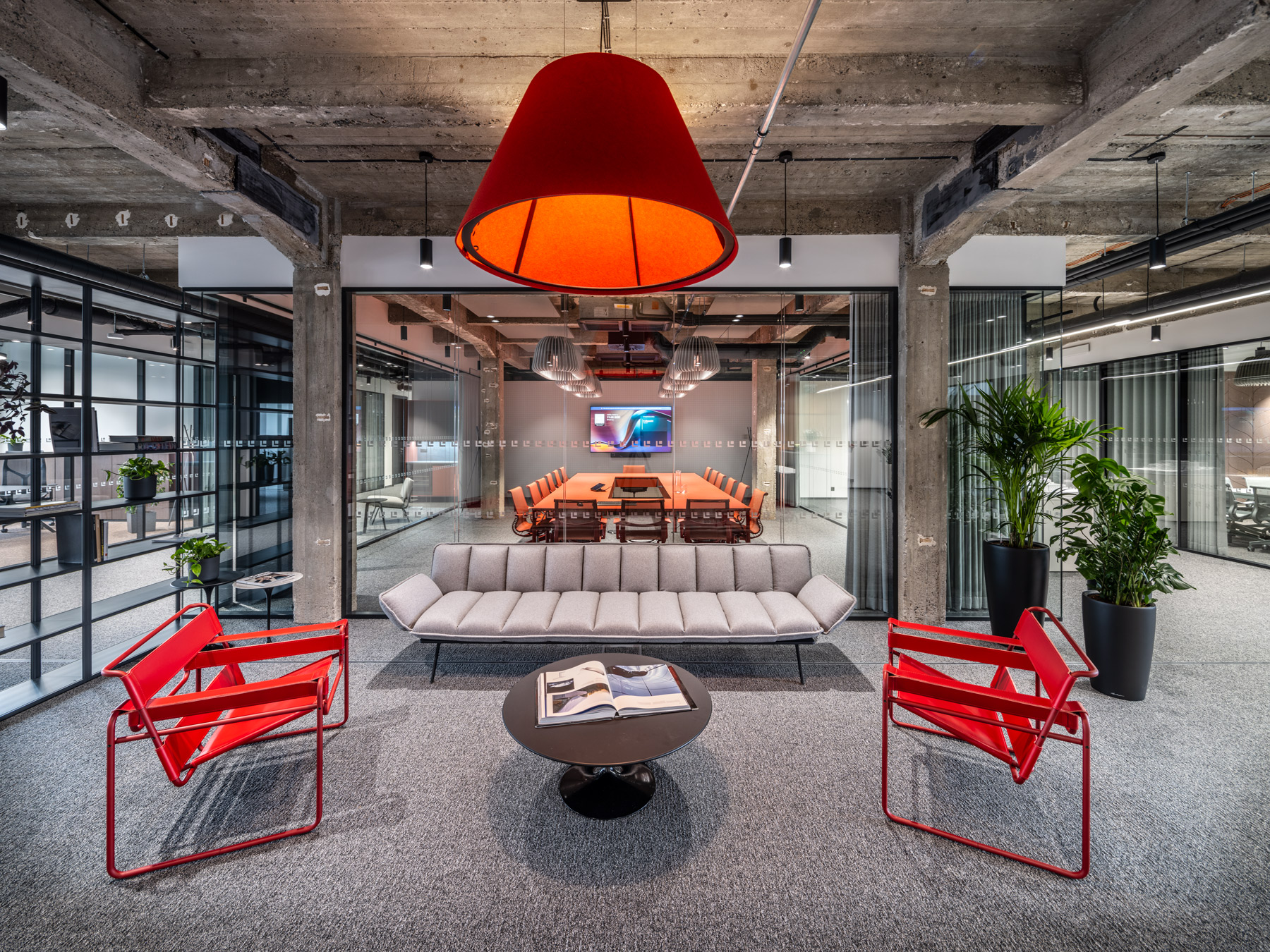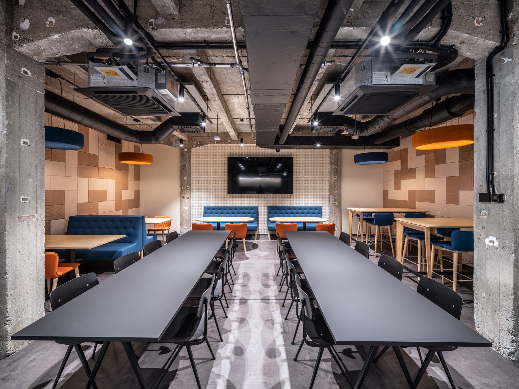 Pro tento výjimečný prostor jsme v cre8 dodali kompletní portfolio mobiliáře a akustiky, které splňuje nejvyšší nároky na design i funkčnost. Skutečnými perlami interiéru jsou ikony značky Knoll – nadčasová křesla Wassily a elegantní stolky Saarinen, které prostoru dodávají nádech klasického modernismu. Ergonomické srdce kanceláře tvoří špičková pracoviště od Herman Miller a CBS. Ty jsou vybavená židlemi Cosm, Mirra a Setu, stoly Nevi Link, mobilními kontejnery OE1 a precizními rameny Flo s chytrými držáky Loop CPU a Micro. Relaxační zóny a komunitní prostory ožily díky soft seatingu a doplňkům od HAY, Enea a Sancal. O nekompromisní ticho na práci se starají budky Framery a pokročilá akustická řešení od EchoJazz a BuzziSpace.