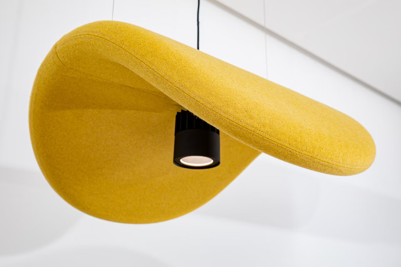 Want to add some softness to your space? BuzziChip’s curved design helps you move away from hard edges while adding a playful touch to any area. The acoustic lighting powerhouse can help form multiple spaces for togetherness, whether in an office, hospitality sector, residential area, or beyond. BuzziChip features soft, whimsical curves crafted from a voluminous honeycomb body. Due to its plush exterior, BuzziChip instantly creates a cozy environment all while helping to absorb excessive sounds. Combine the different models to form a playful and dynamic ceiling in your workspace. BuzziChip Small is perfect for individual tables or smaller gathering spots, while BuzziChip Medium and BuzziChip Large work well in larger collaboration spaces, meeting rooms and reception areas. Place the bigger models above a large table as a complementing accent without overpowering the existing décor in your workspace or dealing with multiple power cords.