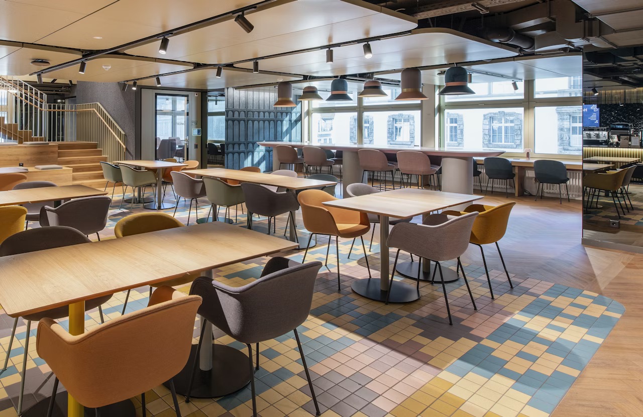 Be bold and bright like this playful pendant lamp. It is cartoon-like on the outside, but high-tech under the hood. The result—sound absorption and functional lighting in one.