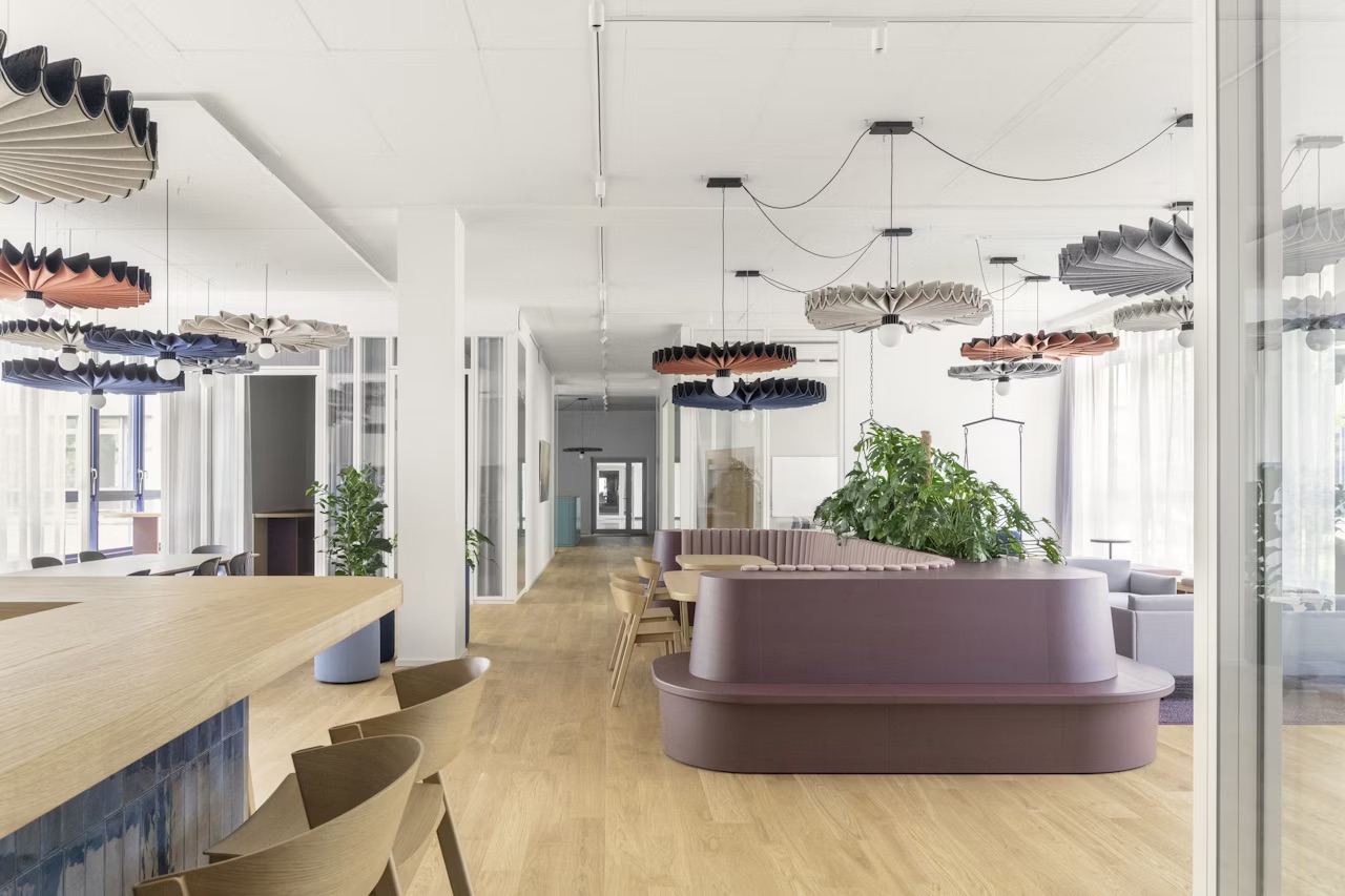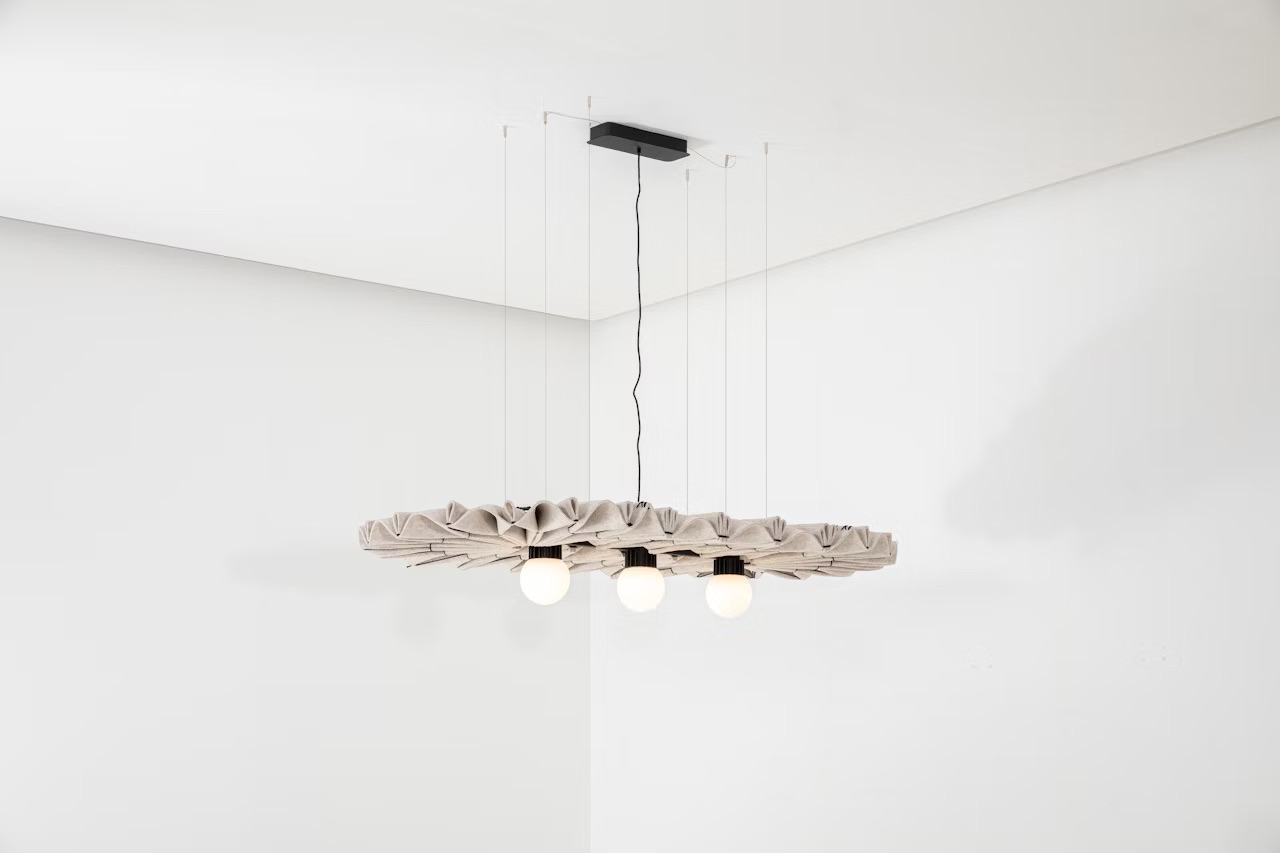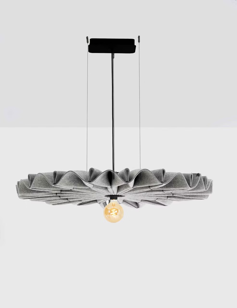 The traditional craft of hand pleating and lacing, which requires a steady hand and eye for detail, takes more than 2 hours for each BuzziPleat LED. You will definitely make a statement by hanging this acoustic lighting solution that marries sound control and illumination. The collection includes two models, BuzziPleat Ripple, and BuzziPleat Edel. Both available in a select range of BuzziFelt colors, providing both variety and fun.