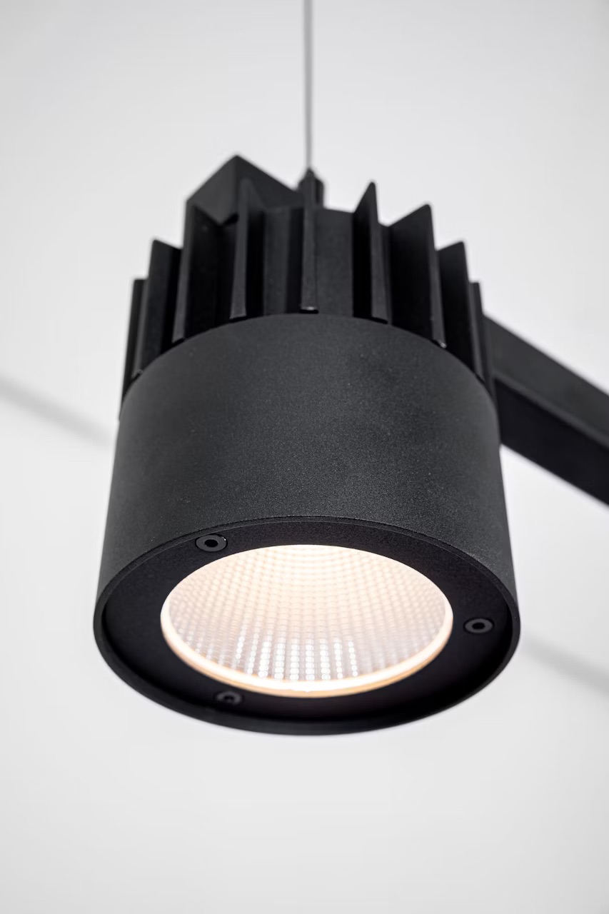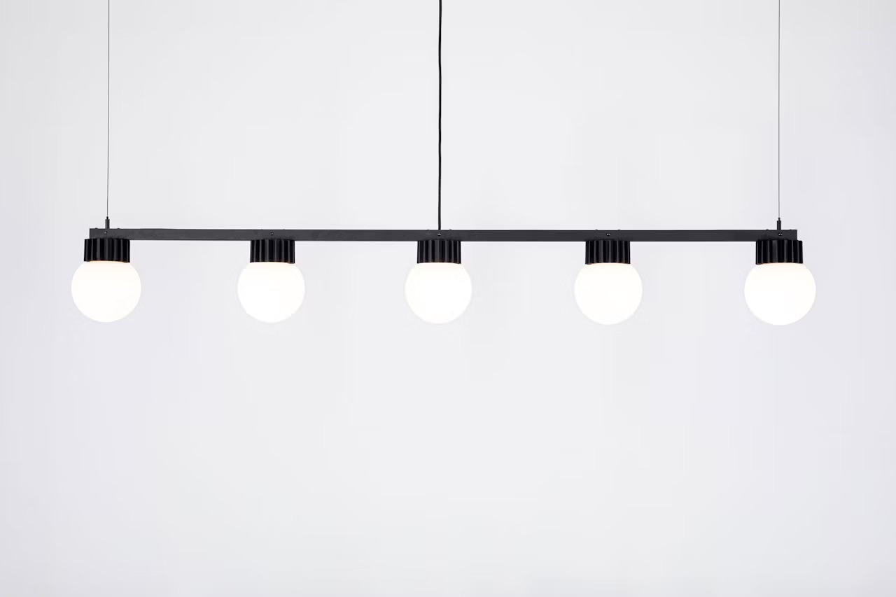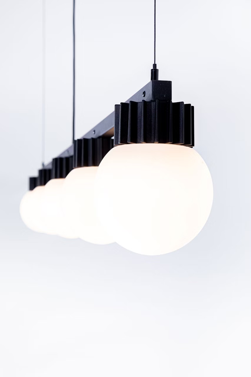 Modern and minimalistic - this is BuzziSol. This stylish ceiling-suspended light consists of a frosted LED globe light that hangs from a black powder coated metal heat sink for a modern twist. It is simple, versatile lamp, designed to fit existing acoustic lighting solutions, such as BuzziPleat LED and BuzziShade Pendant.