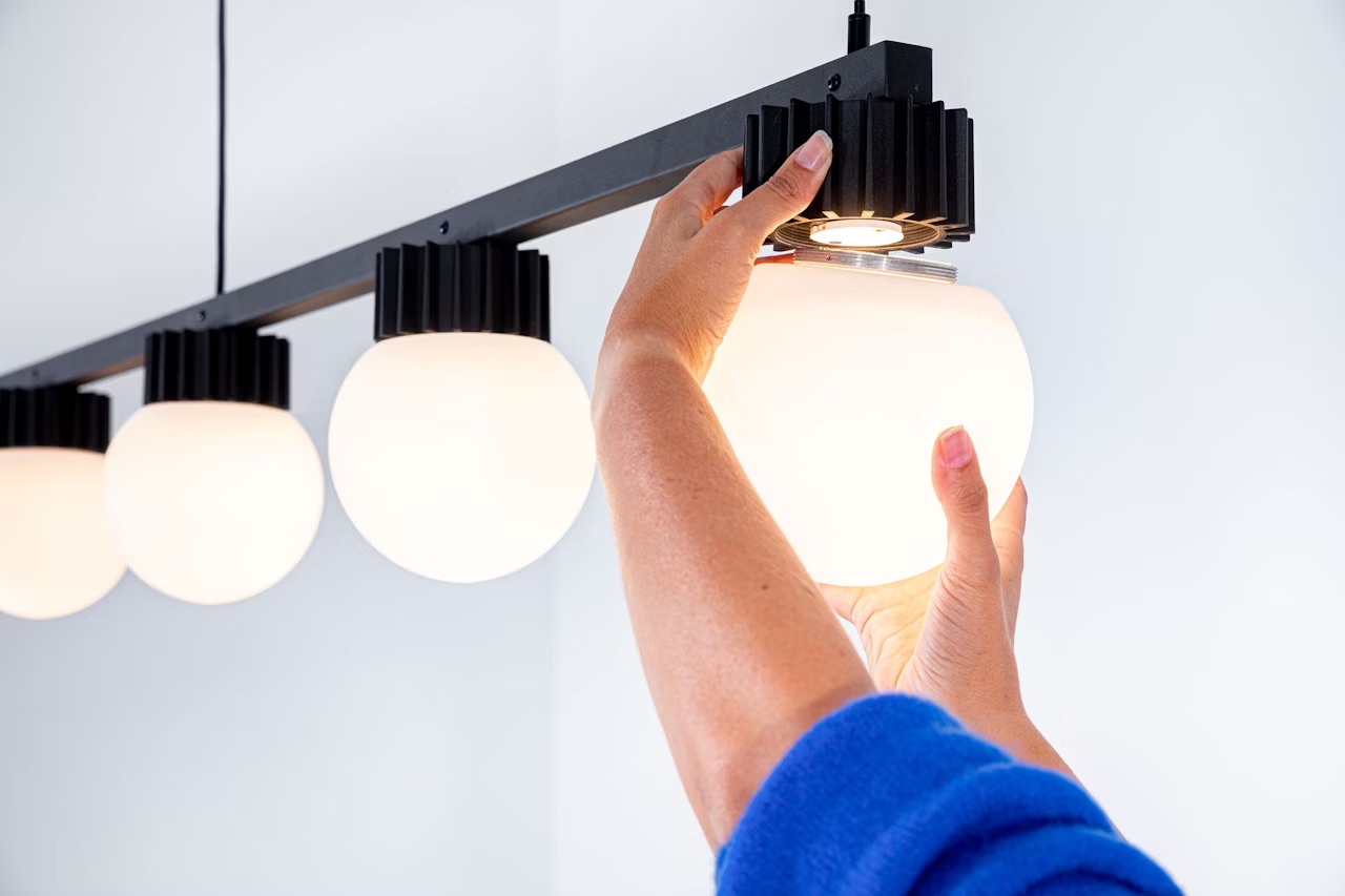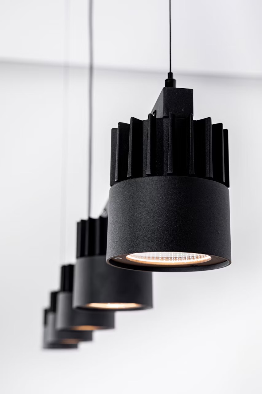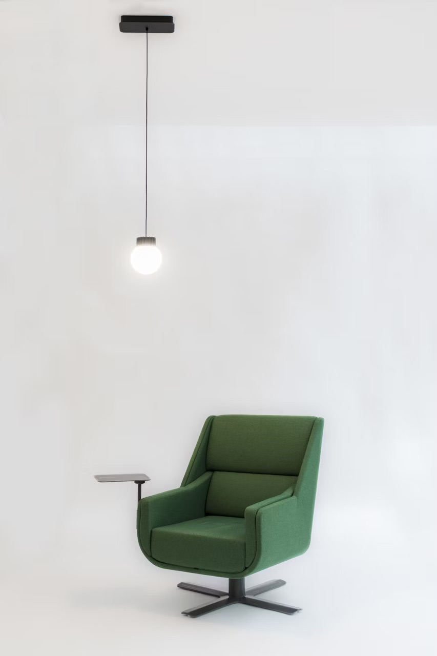 Modern and minimalistic - this is BuzziSol. This stylish ceiling-suspended light consists of a frosted LED globe light that hangs from a black powder coated metal heat sink for a modern twist. It is simple, versatile lamp, designed to fit existing acoustic lighting solutions, such as BuzziPleat LED and BuzziShade Pendant.