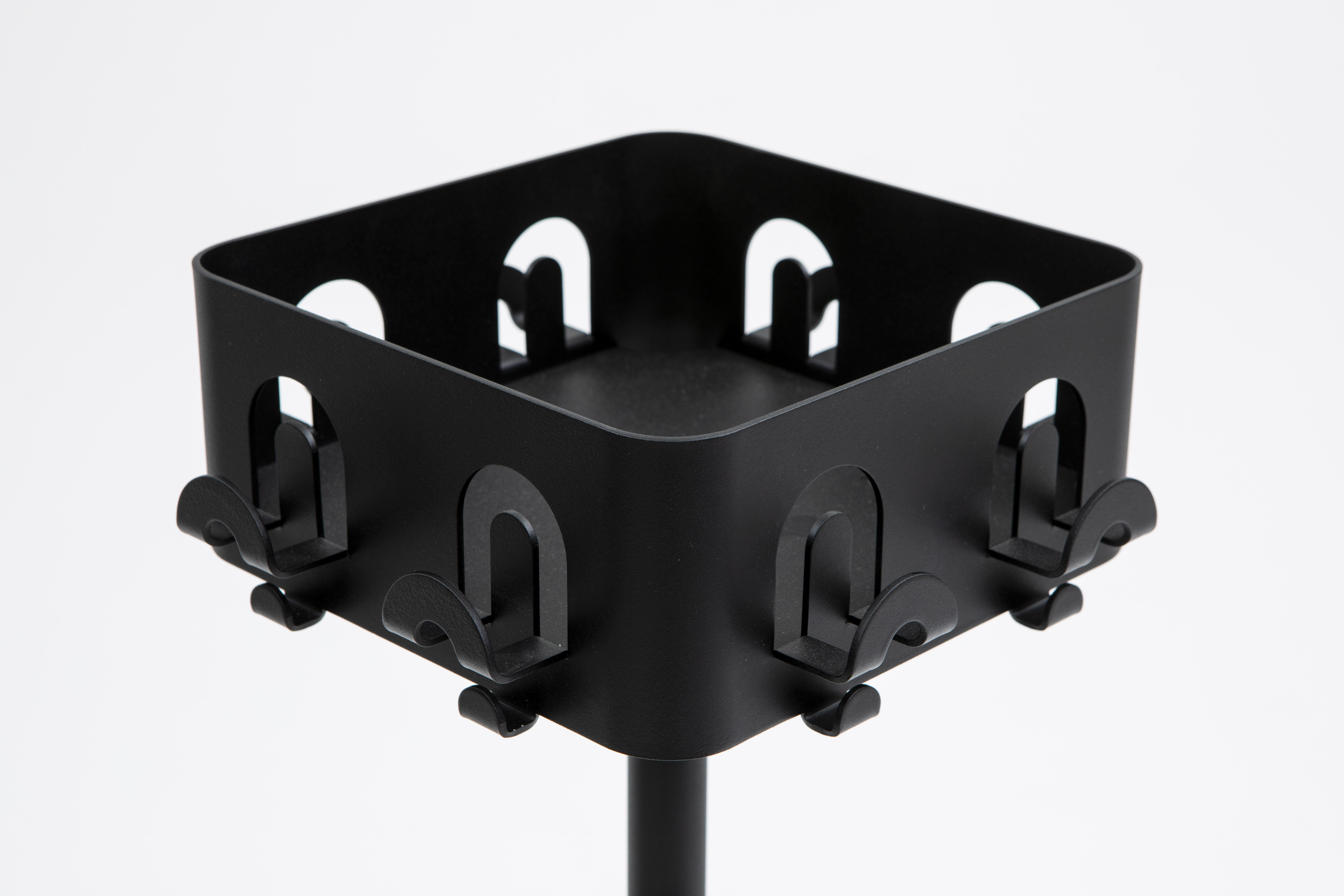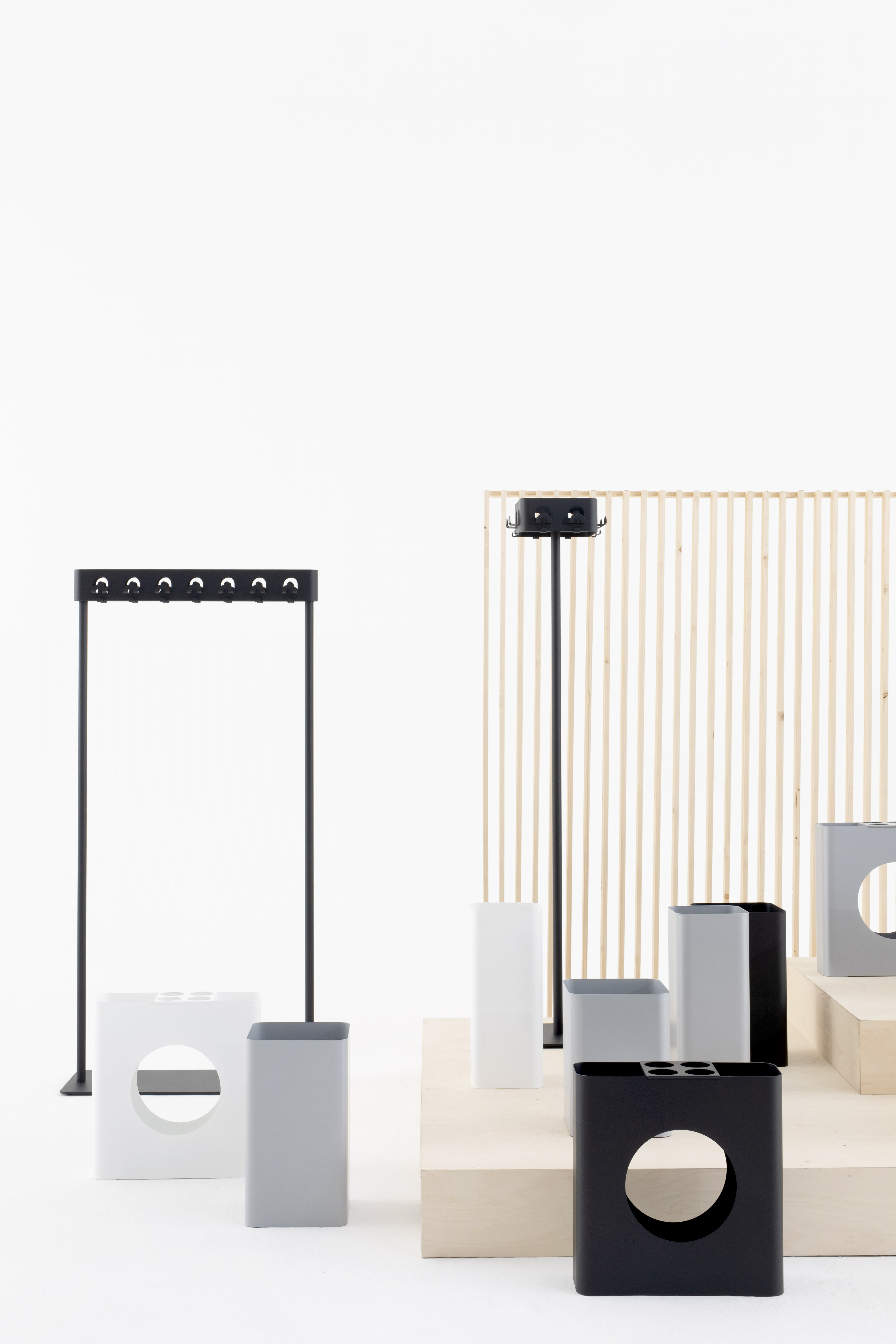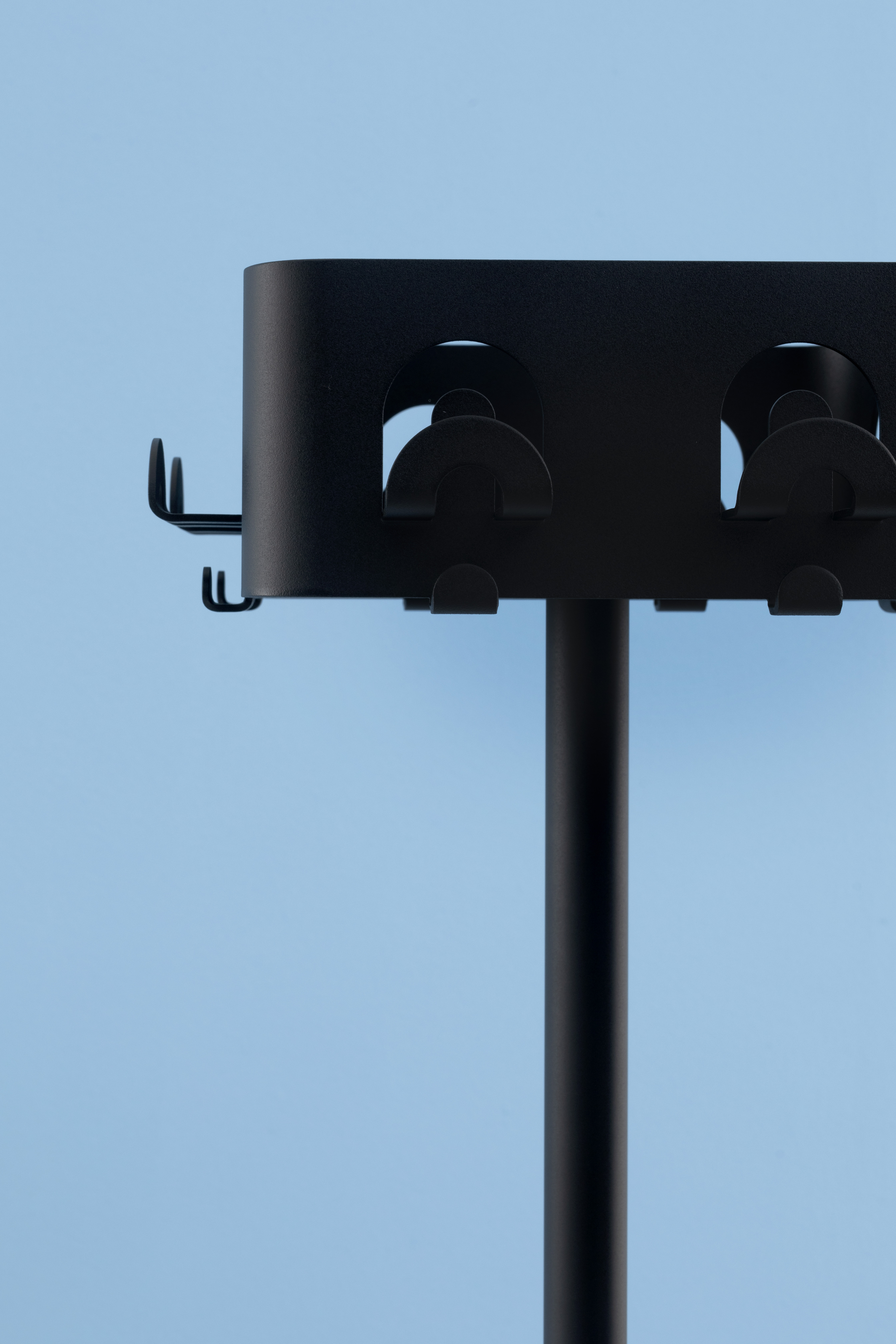 With eight large hooks above and small hooks below, the Flow Square is attractive, yet highly practical. The crown and stable steel base are coated in white while the pole comes in chrome.
