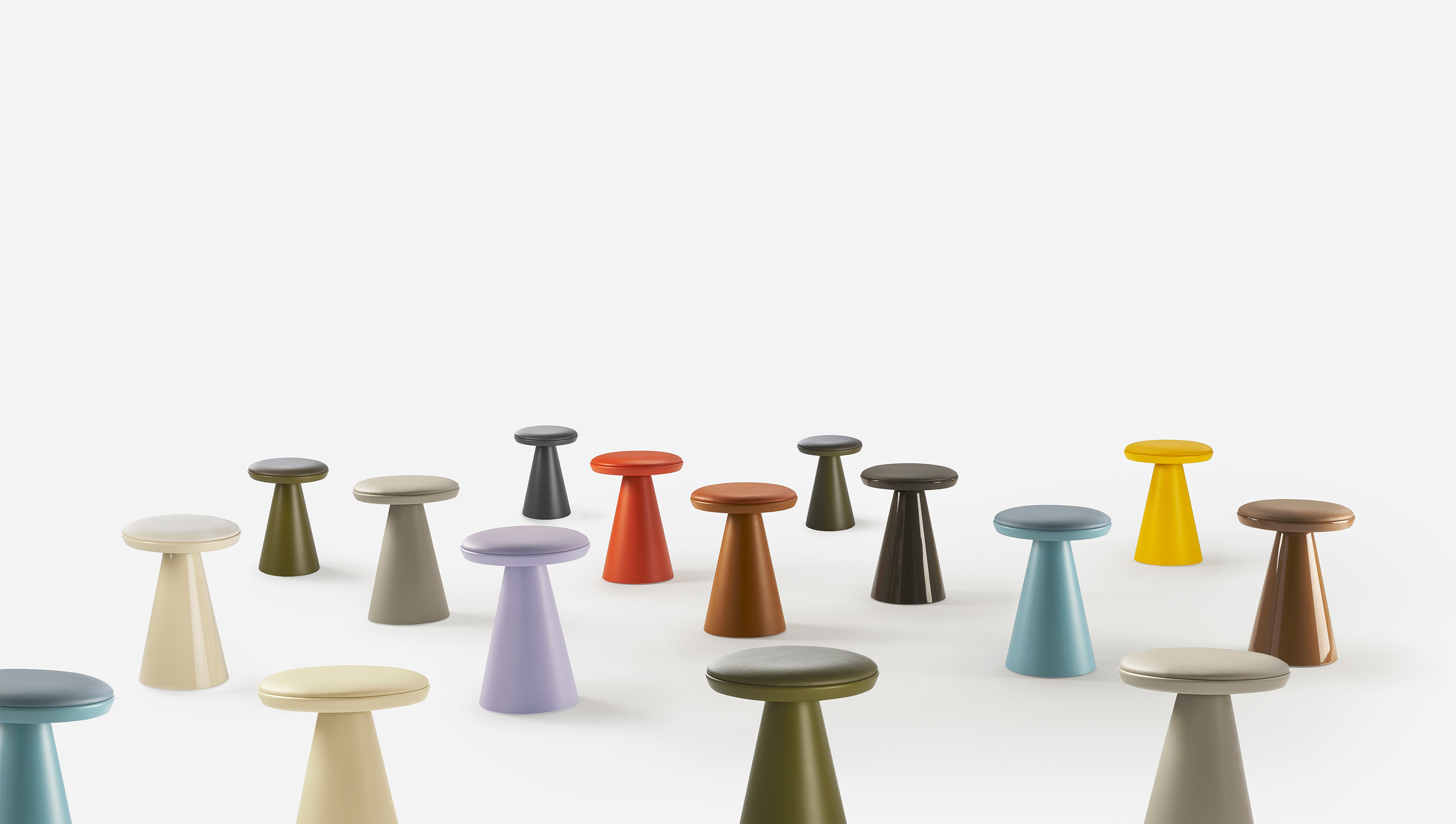 The Pion is a complete set of pieces. The queens and kings are represented by the dining and conference tables. Flexible enough to be used in a range of situations, from a meeting room to a restaurant or living room, they command attention wherever they are placed. Rooks, bishops and knights can all find their analogies within a legion of occasional tables. And yet, the humble pawn, the stool, should not be overlooked. Small and robust, its leather seat has been carefully tanned to match the colour of the lacquered base.