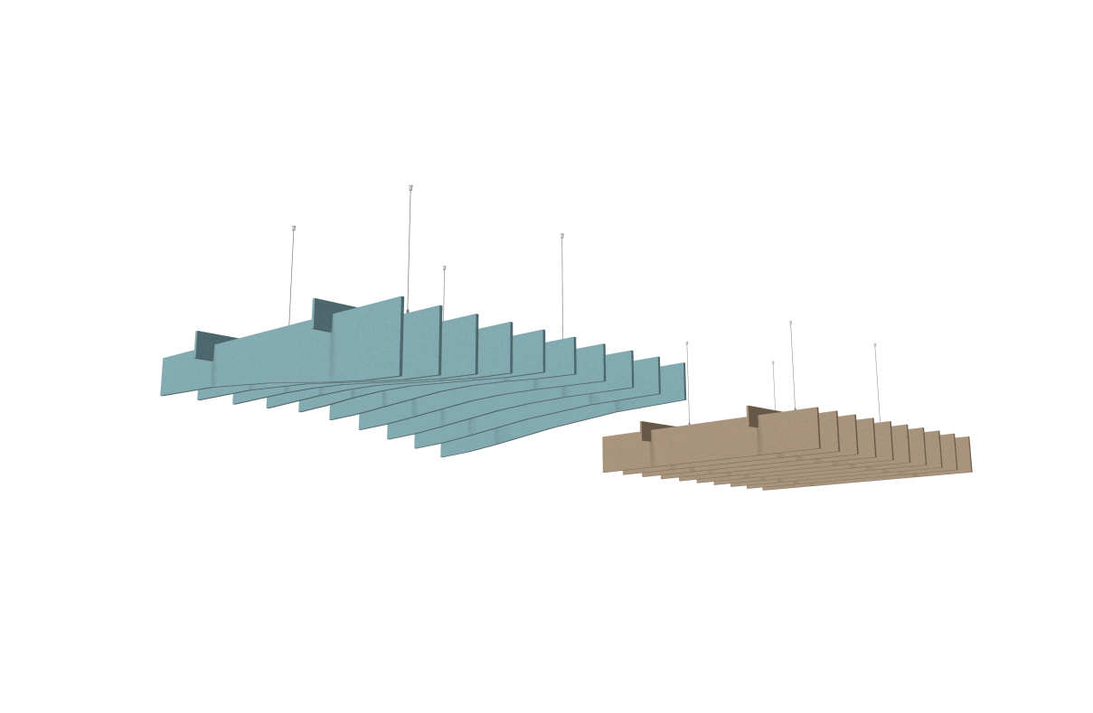 Acoustic baffles provide an optimal solution for open ceilings, where easy access to the building services or the thermoactive air exchange of cooling ceilings must be ensured.