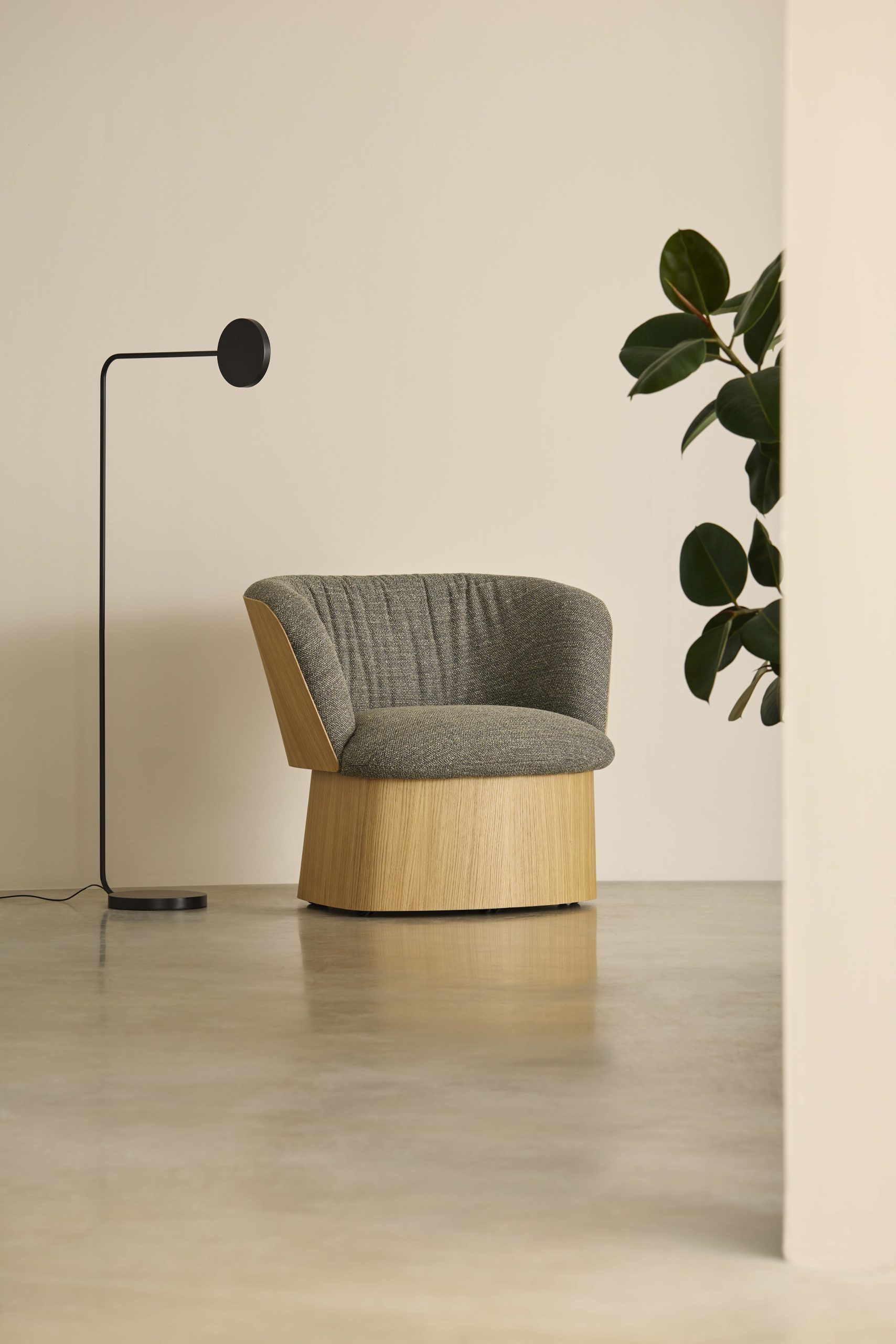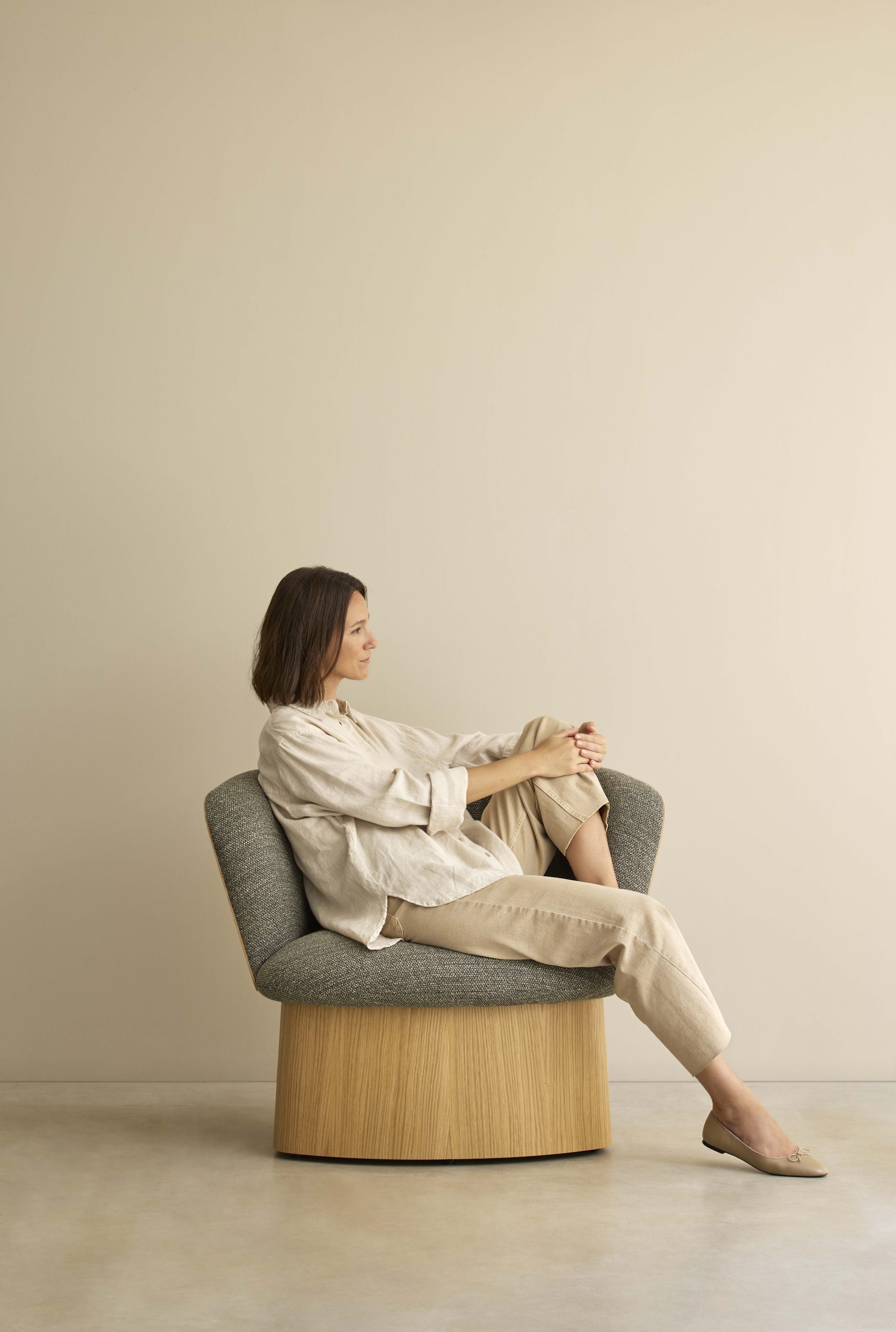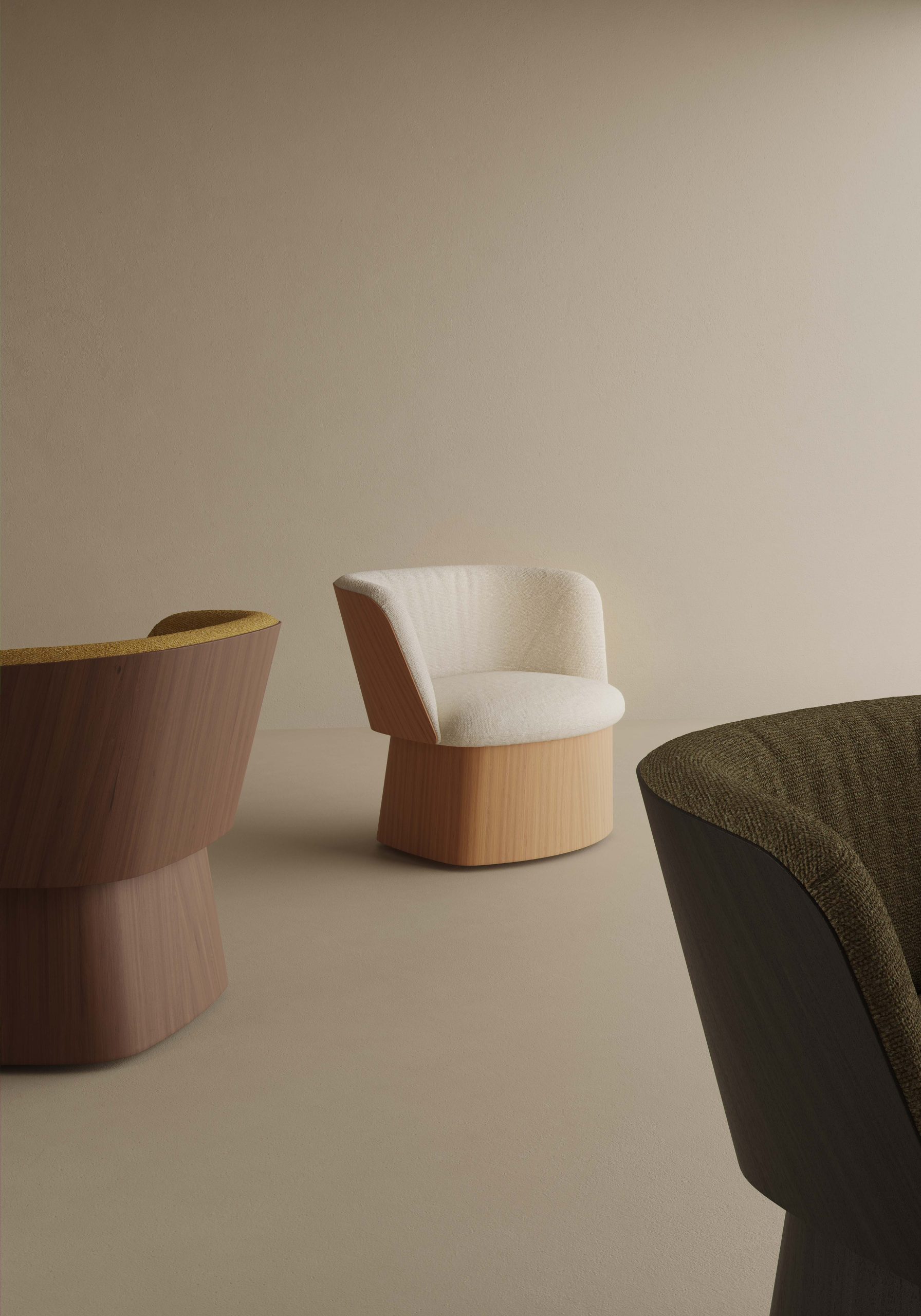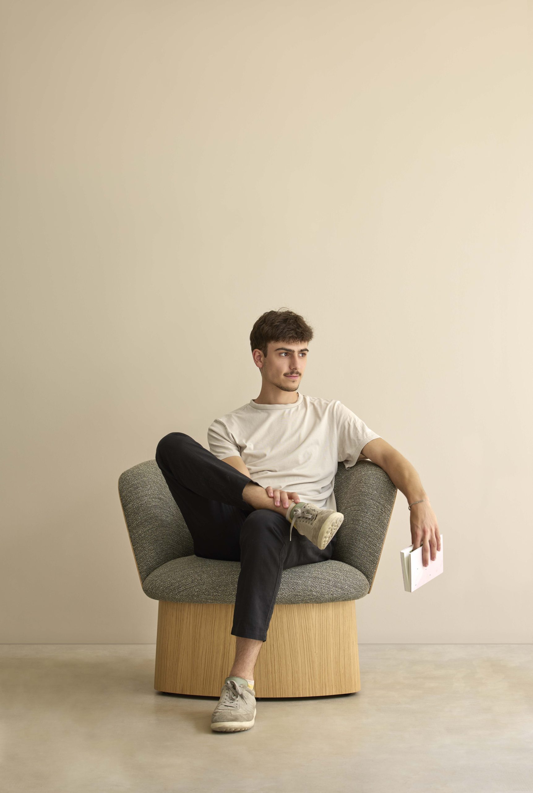 With its oak plywood shell and soft upholstery, the backrest warmly invites you to sit down, while the organic seams enhance the feeling of coziness. The name Manto—meaning shelter and comfort in both Italian and Spanish—perfectly reflects the spirit of the collection.