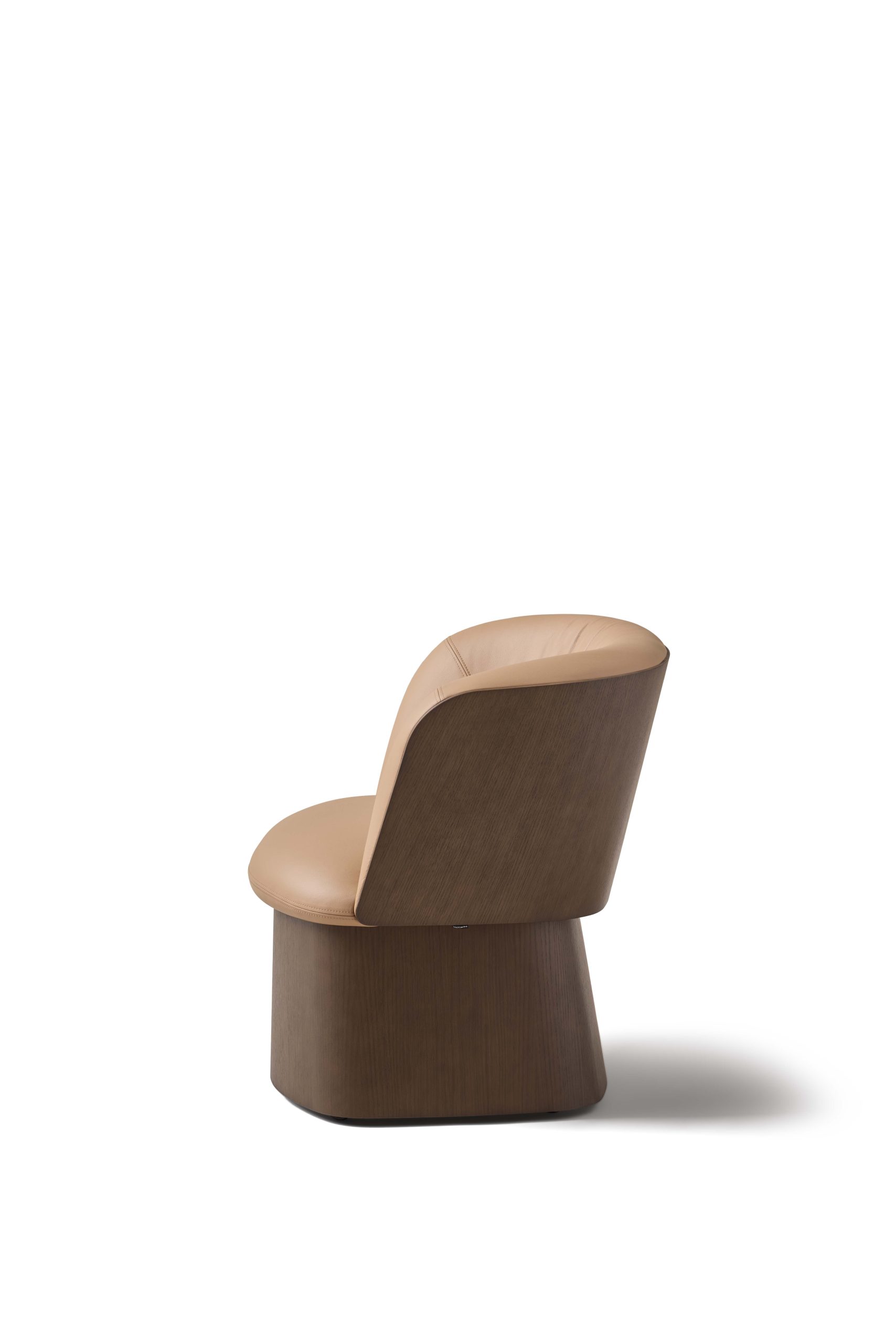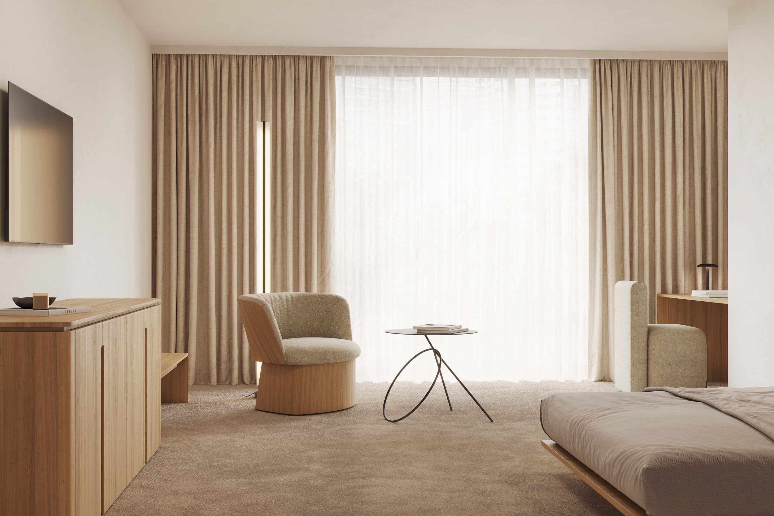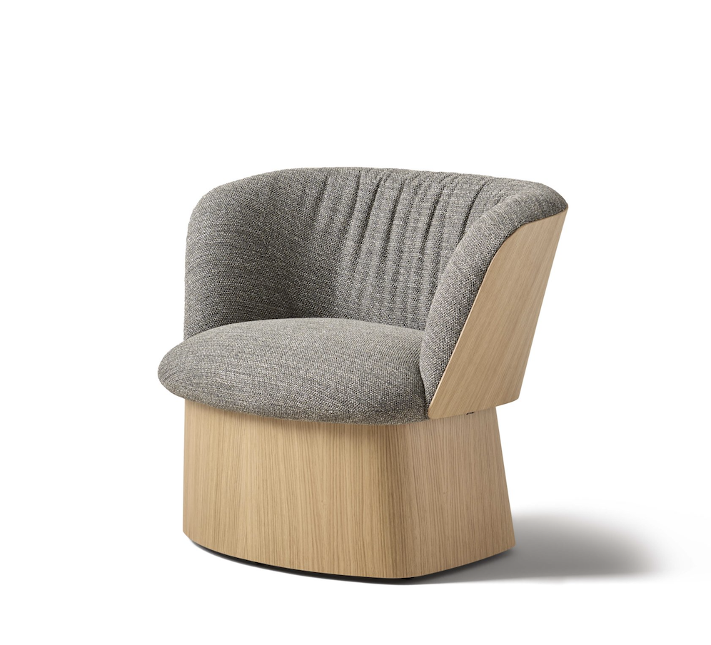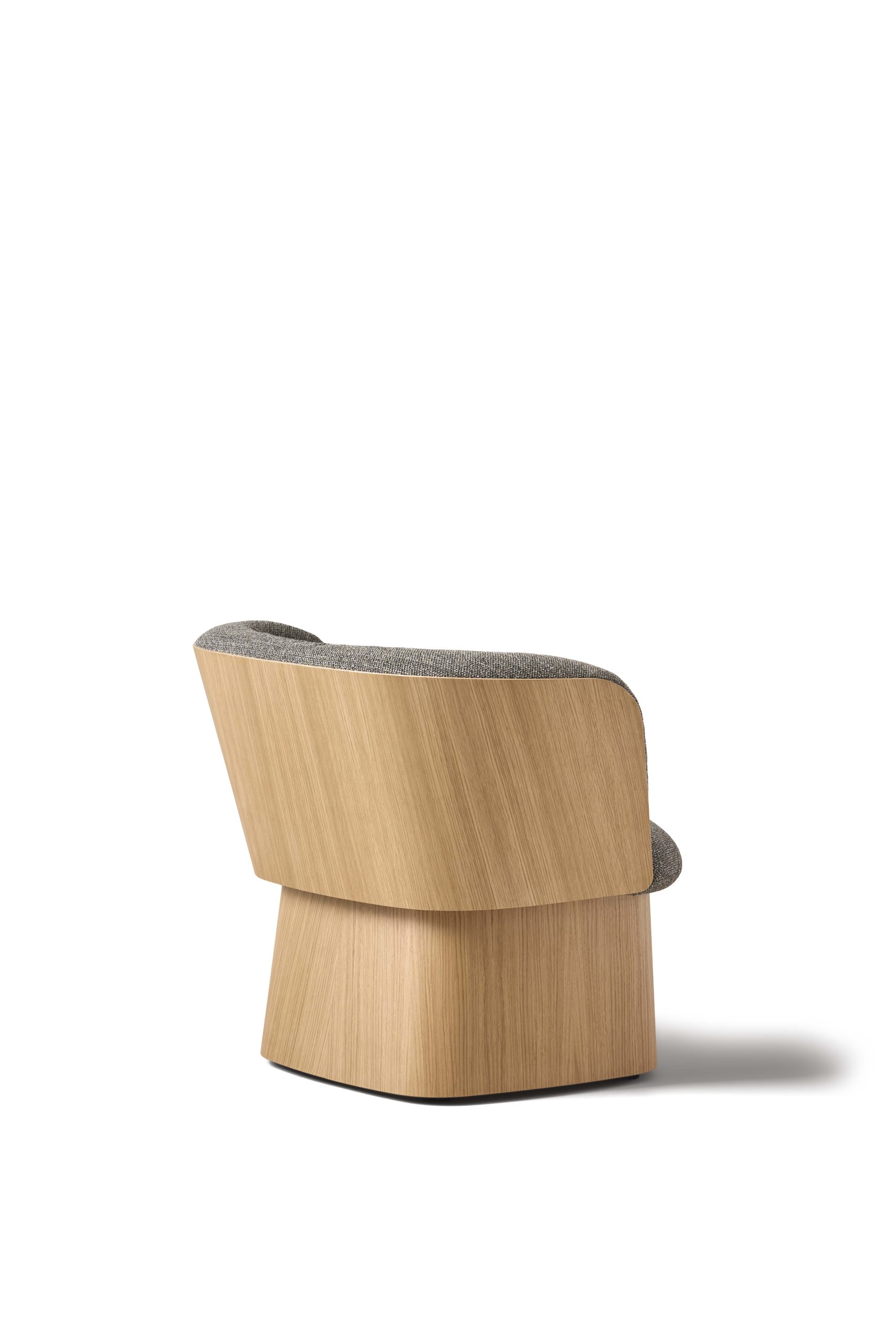 With its oak plywood shell and soft upholstery, the backrest warmly invites you to sit down, while the organic seams enhance the feeling of coziness. The name Manto—meaning shelter and comfort in both Italian and Spanish—perfectly reflects the spirit of the collection.