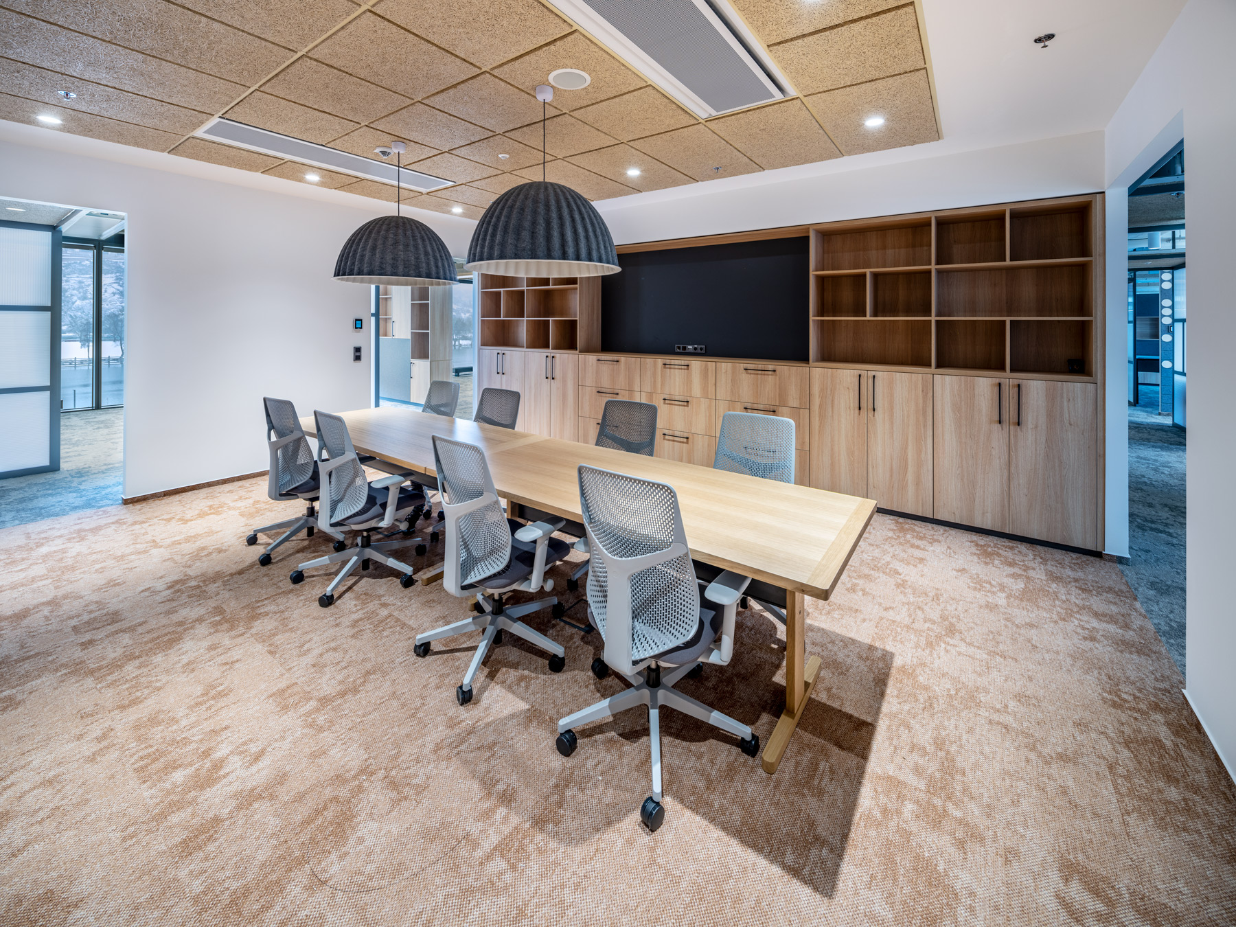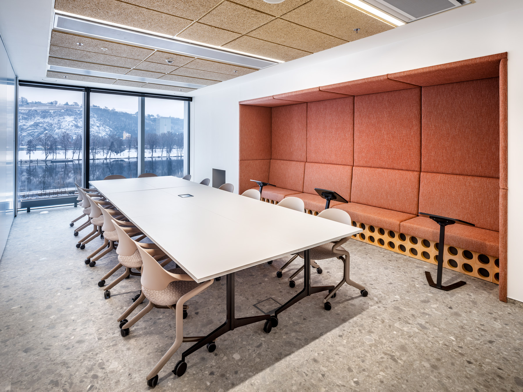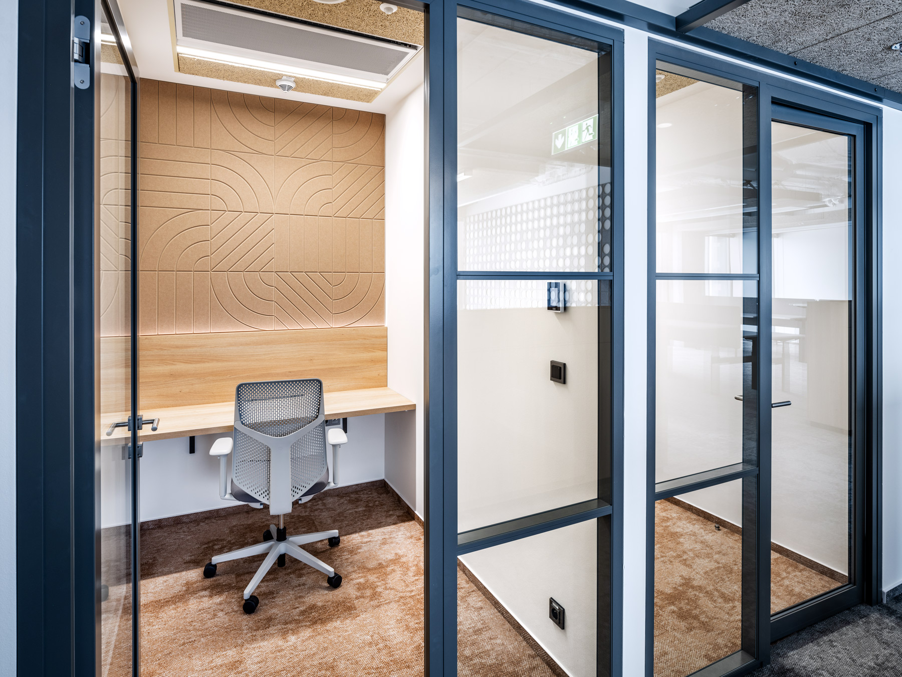 For the new headquarters of this prominent engineering firm, we at cre8 designed an interior that reflects both their professional heritage and their modern vision. The workspace is anchored by top-tier ergonomics from Herman Miller—featuring breathable Verus Triflex chairs, the innovative stackable Fuld model, and the flexible Nevi Link desk system alongside Layout configurations. We seamlessly blended this technical precision with the playful Danish aesthetics of HAY, incorporating Passerelle and CPH 30 tables, the AAL (82, 87, 92) lounge chair family, and Revolver bar stools, complemented by stylish details like Kofi and Bella tables or the iconic Wall clock. The refined atmosphere is further enhanced by furniture from Enea (Mate, Lore, Kua) and design gems from Sancal (Rew) and Viccarbe (Quadra, Maarten). To ensure perfect quiet for focused tasks, the space is equipped with Framery One Compact and Four acoustic booths, while EchoBoard panels from EchoJazz add a layer of soft, acoustic comfort.