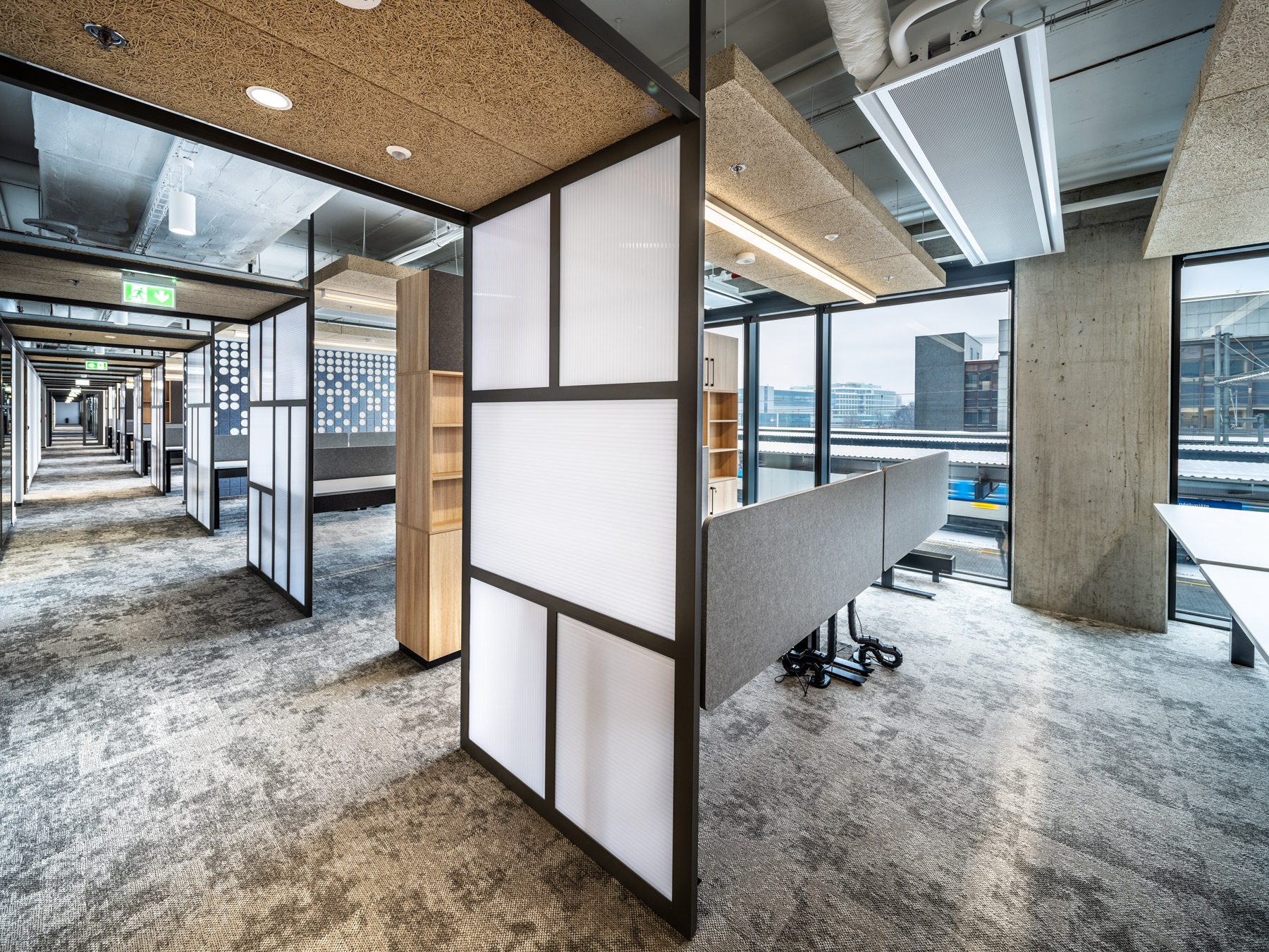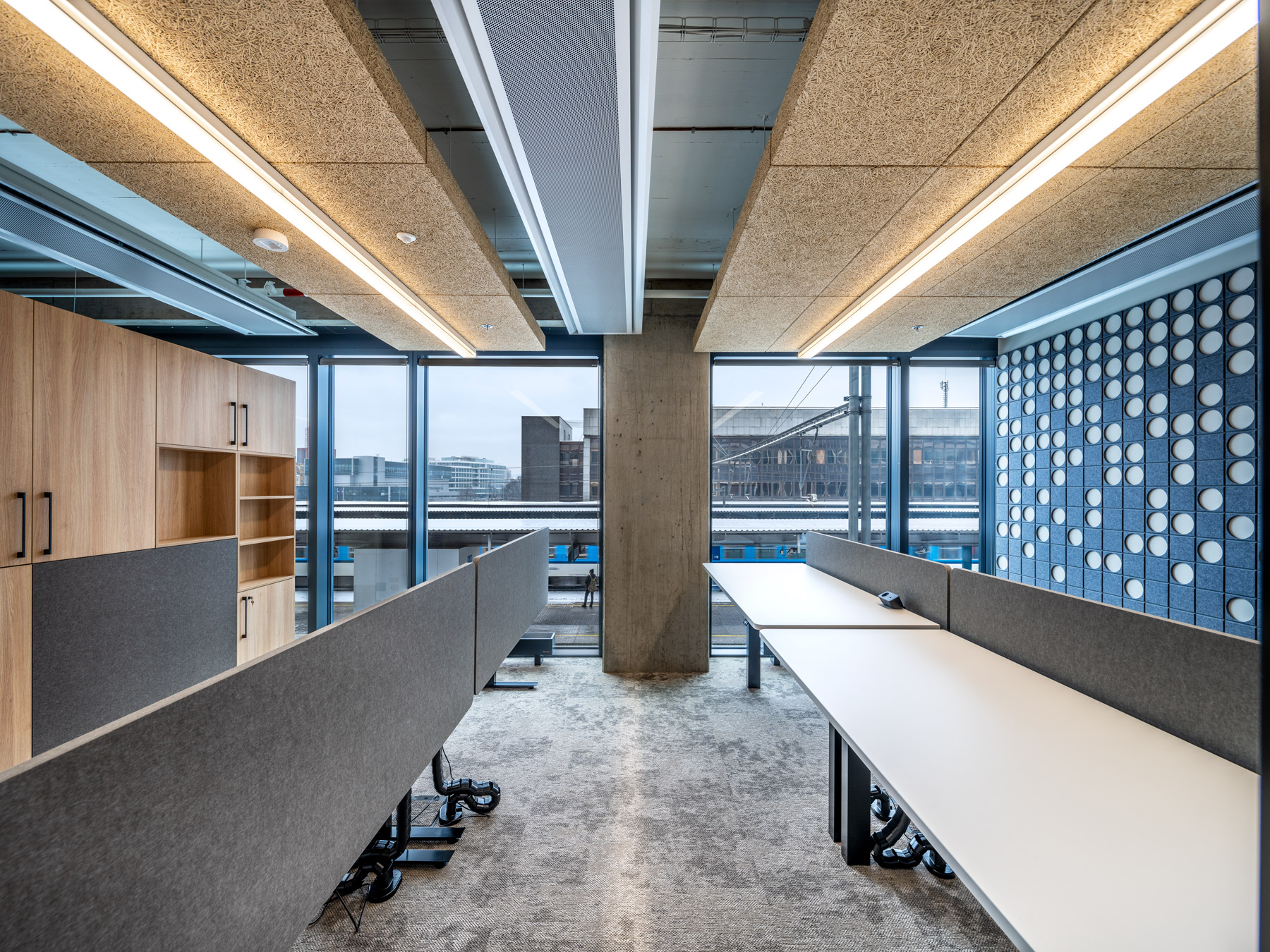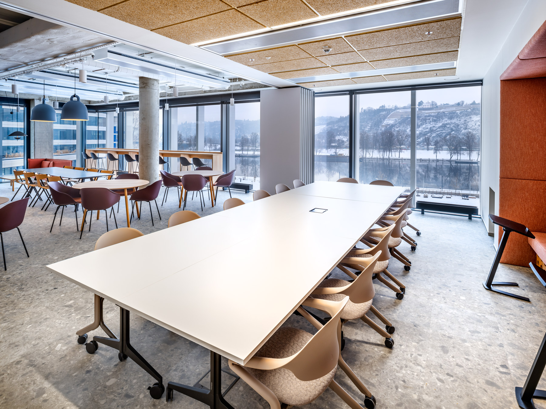 For the new headquarters of this prominent engineering firm, we at cre8 designed an interior that reflects both their professional heritage and their modern vision. The workspace is anchored by top-tier ergonomics from Herman Miller—featuring breathable Verus Triflex chairs, the innovative stackable Fuld model, and the flexible Nevi Link desk system alongside Layout configurations. We seamlessly blended this technical precision with the playful Danish aesthetics of HAY, incorporating Passerelle and CPH 30 tables, the AAL (82, 87, 92) lounge chair family, and Revolver bar stools, complemented by stylish details like Kofi and Bella tables or the iconic Wall clock. The refined atmosphere is further enhanced by furniture from Enea (Mate, Lore, Kua) and design gems from Sancal (Rew) and Viccarbe (Quadra, Maarten). To ensure perfect quiet for focused tasks, the space is equipped with Framery One Compact and Four acoustic booths, while EchoBoard panels from EchoJazz add a layer of soft, acoustic comfort.