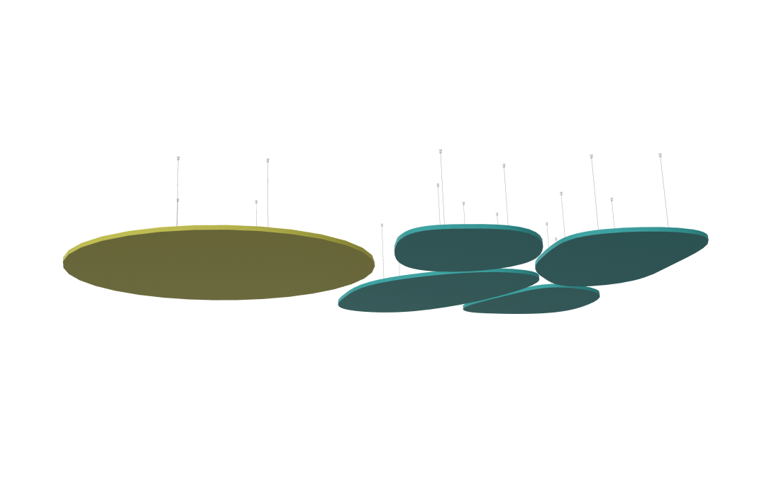 Různorodými tvary lze vytvořit širokou škálu stropních řešení a k dispozici je i velký výběr barev. Kromě standardních provedení lze vyrobit také atypické tvary a rozměry podle požadavků zákazníka. EchoSail® se tak může stát výrazným designovým prvkem a současně zlepšit akustický komfort v místnosti.