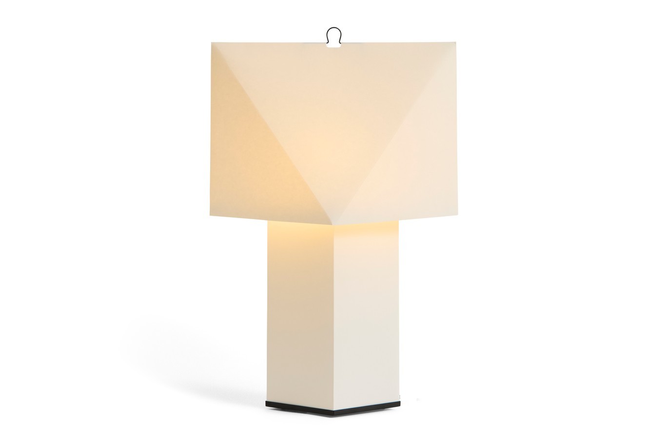 Aplat Table Lamp je lehká, sochařsky pojatá lampa vyrobená převážně ze skládaného papíru. Díky plochému balení si ji uživatel sestavuje sám – přesné linie a úhly postupně vytvářejí objem a dávají vzniknout jednoduché, grafické formě.