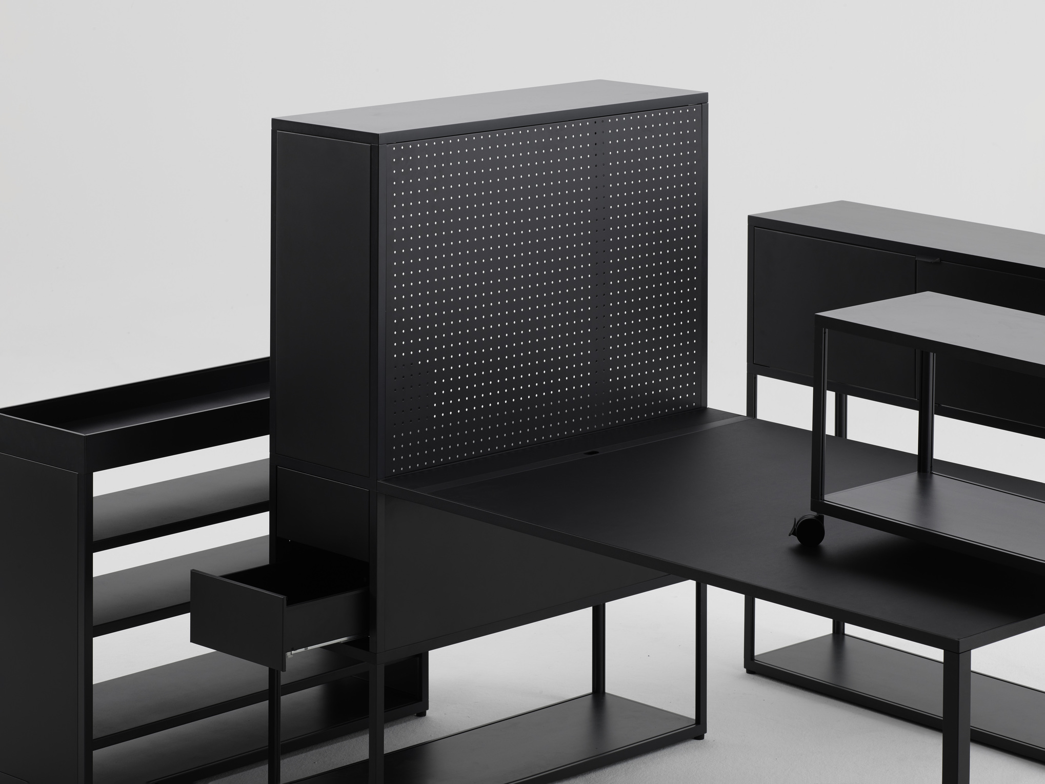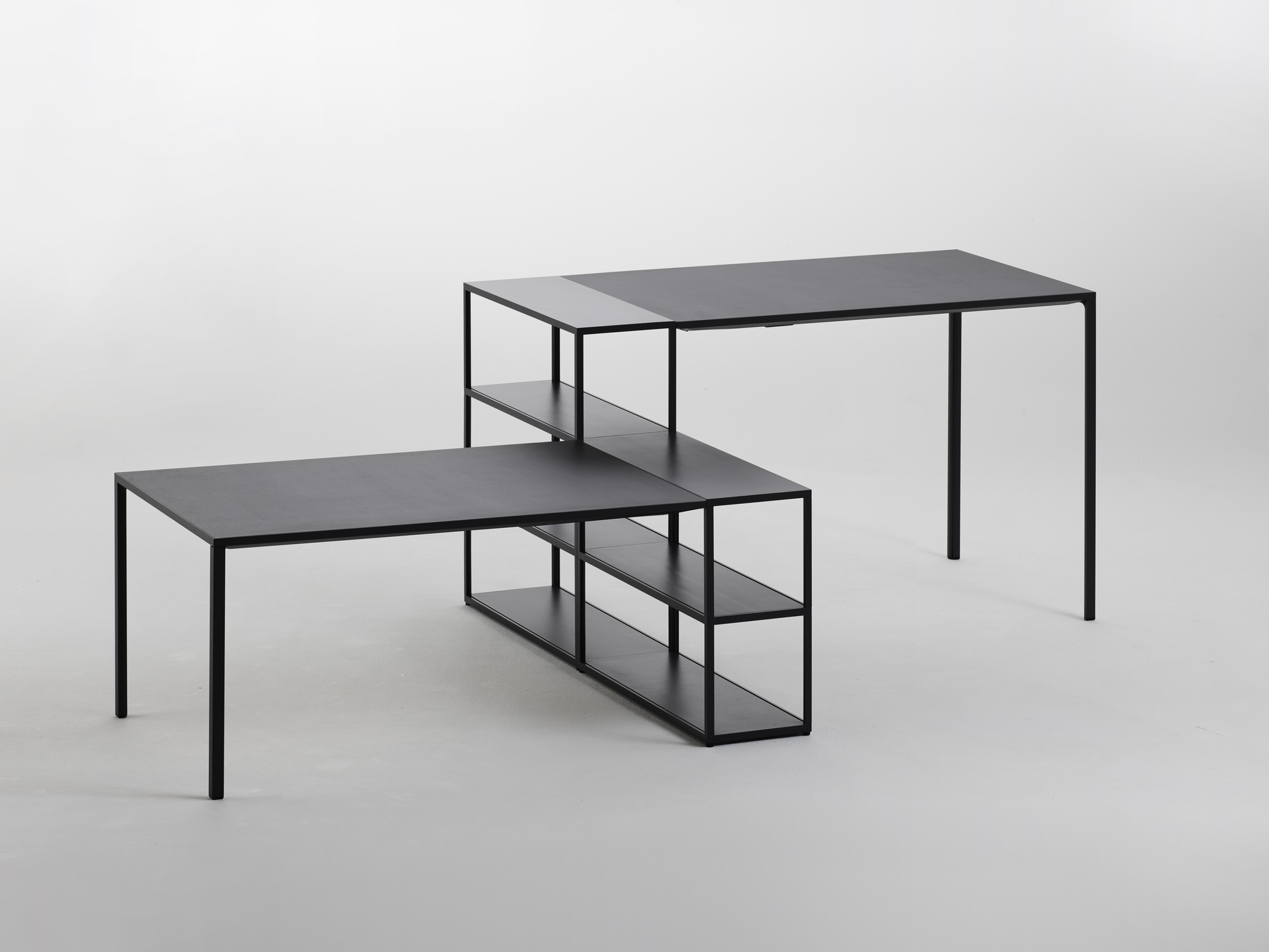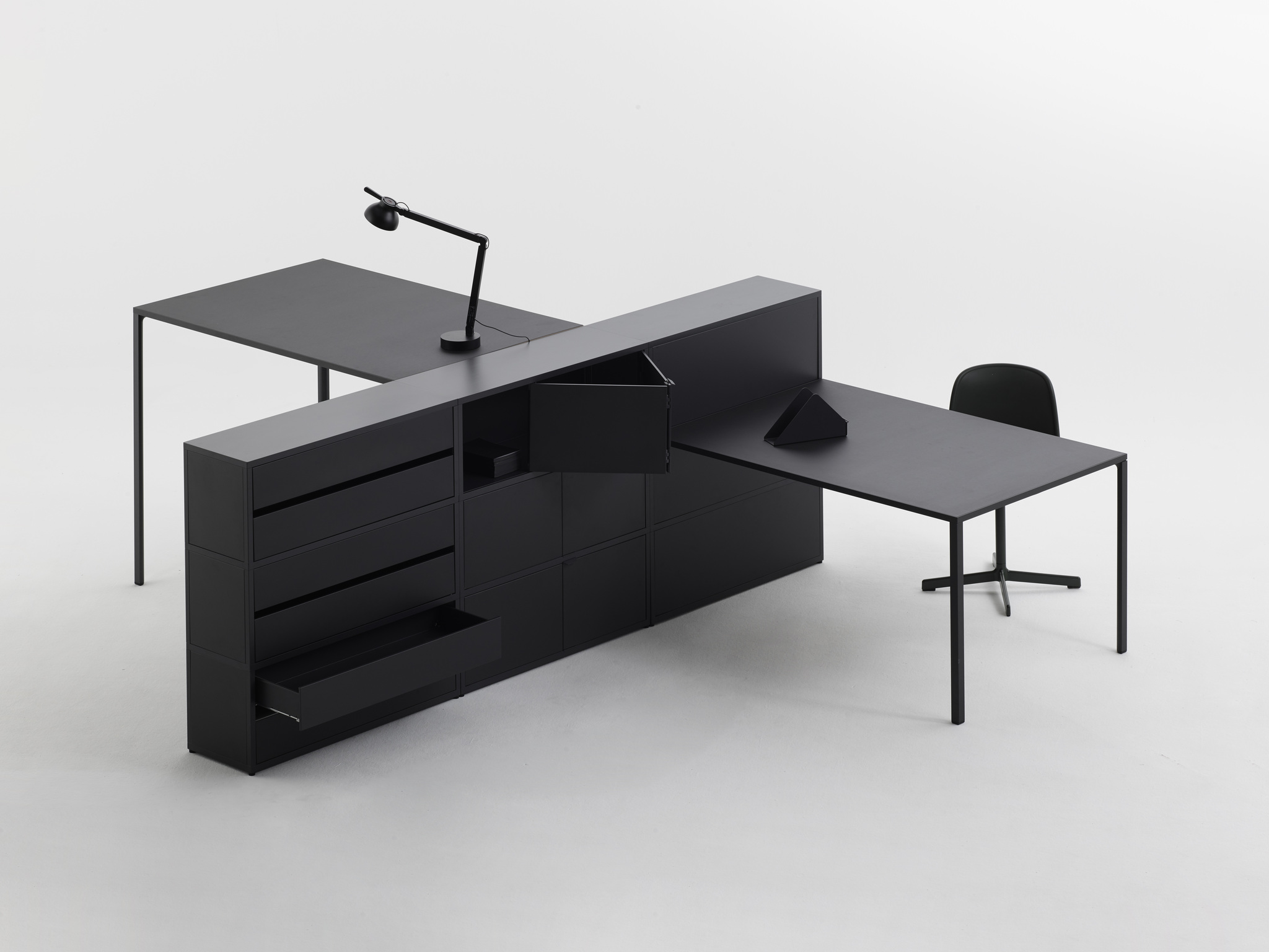 Stolek New Order a stůl New Order High Table s jednoduchou konstrukcí z materiálů s dlouhou životností spojují funkční a estetické kvality ve všestranném designu stolu. Díky lehkému, odolnému hliníkovému rámu a stolní desce v různých materiálových a barevných variantách lze kostru stolu doplnit řešením pro správu kabelů a přepážkami pro zlepšení funkčnosti a organizace. Některé modely stolů nabízejí modulární řešení, která umožňují propojení více stolů a také možnost integrace policového systému New Order, zatímco jiné modely jsou určeny k použití jako volně stojící prvky. Díky přizpůsobivosti stolu je vhodný pro použití v mnoha kontextech, od jednacího stolu nebo pracovní stanice v kancelářském prostředí až po jídelní stůl nebo kuchyňskou linku v soukromém prostředí.
