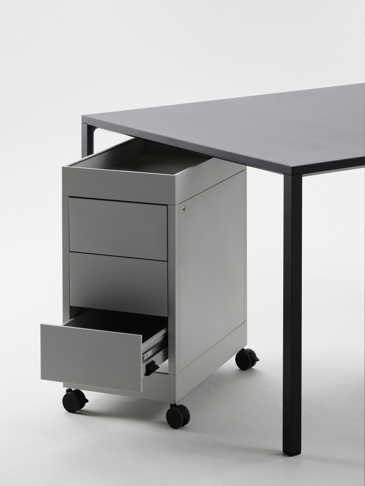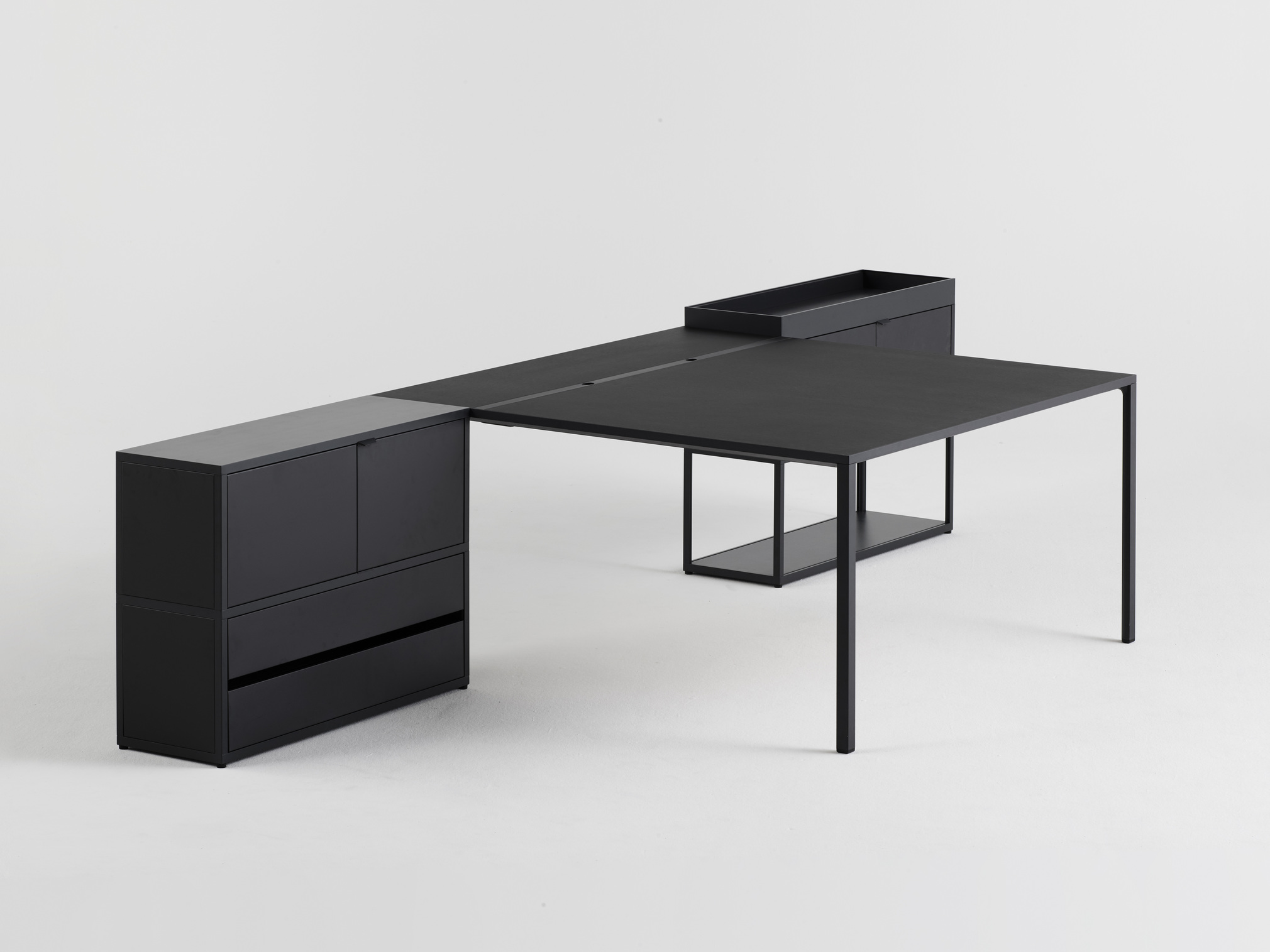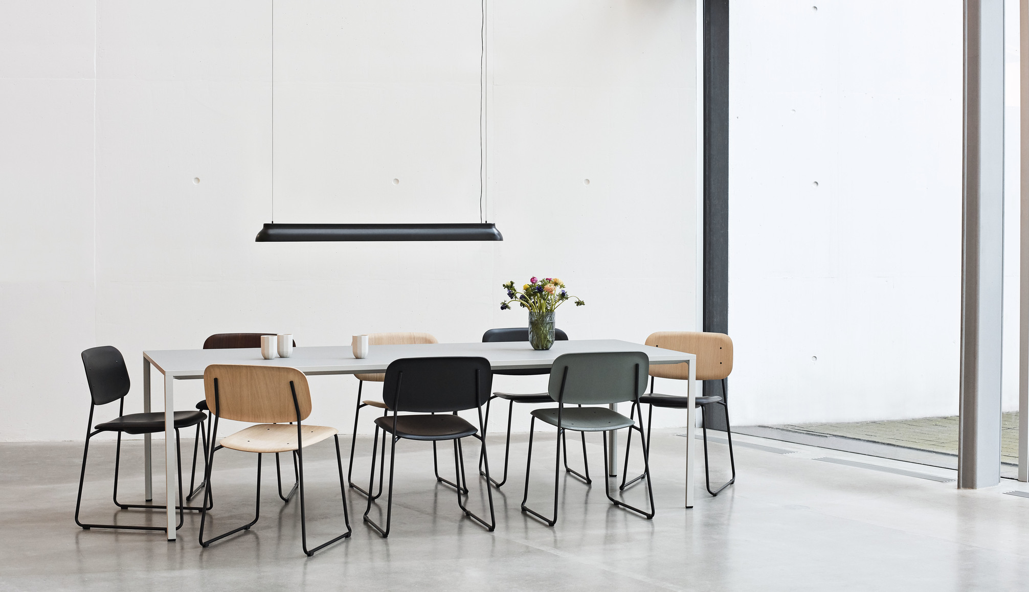 Stolek New Order a stůl New Order High Table s jednoduchou konstrukcí z materiálů s dlouhou životností spojují funkční a estetické kvality ve všestranném designu stolu. Díky lehkému, odolnému hliníkovému rámu a stolní desce v různých materiálových a barevných variantách lze kostru stolu doplnit řešením pro správu kabelů a přepážkami pro zlepšení funkčnosti a organizace. Některé modely stolů nabízejí modulární řešení, která umožňují propojení více stolů a také možnost integrace policového systému New Order, zatímco jiné modely jsou určeny k použití jako volně stojící prvky. Díky přizpůsobivosti stolu je vhodný pro použití v mnoha kontextech, od jednacího stolu nebo pracovní stanice v kancelářském prostředí až po jídelní stůl nebo kuchyňskou linku v soukromém prostředí.