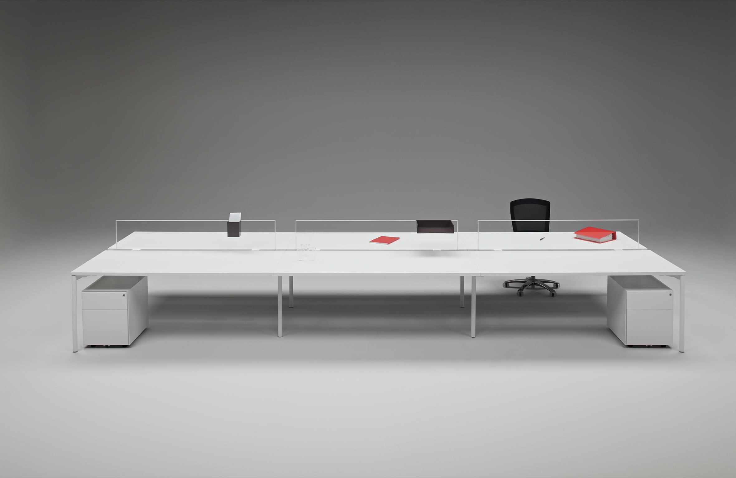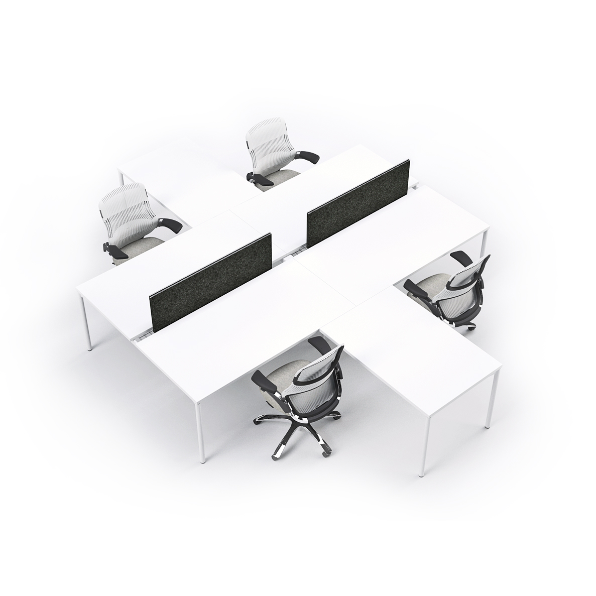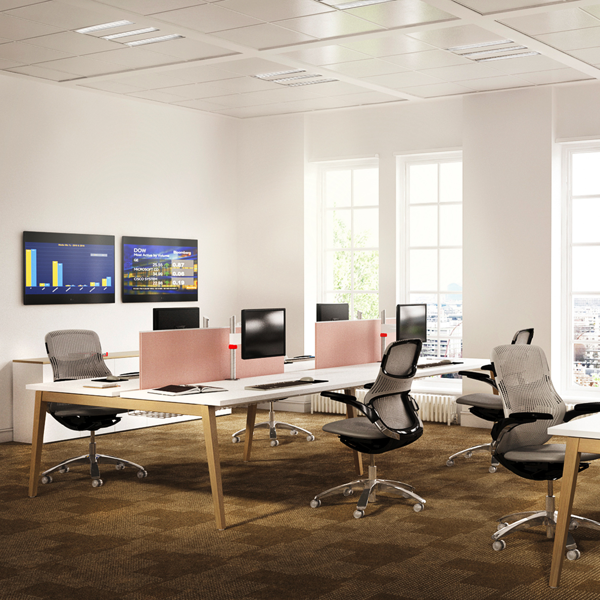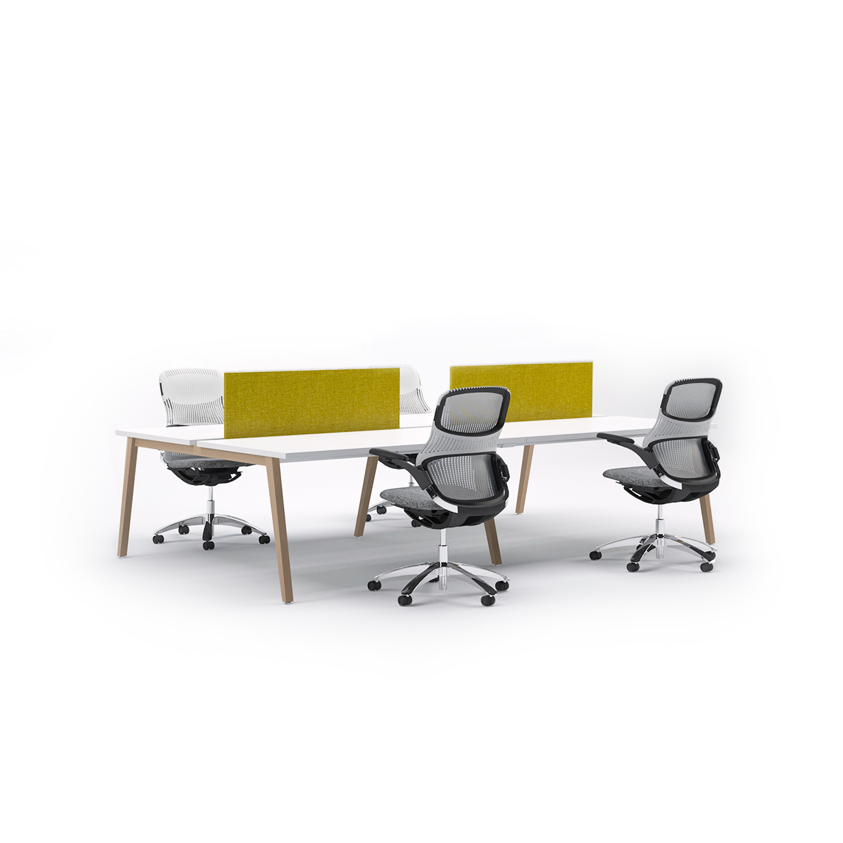 Scope lze přizpůsobit tak, aby odpovídal architektuře i vizuální identitě vašeho prostoru. Vybrat si můžete z více než desítky laků a moření, široké škály látek pro soukromé clony a kovových či dřevěných nohou. Jemnější, rezidenčně laděné detaily pracovních desek a clon, zapuštěné nohy a zkosené hrany dodávají pracovním plochám lehčí a sofistikovanější vzhled.