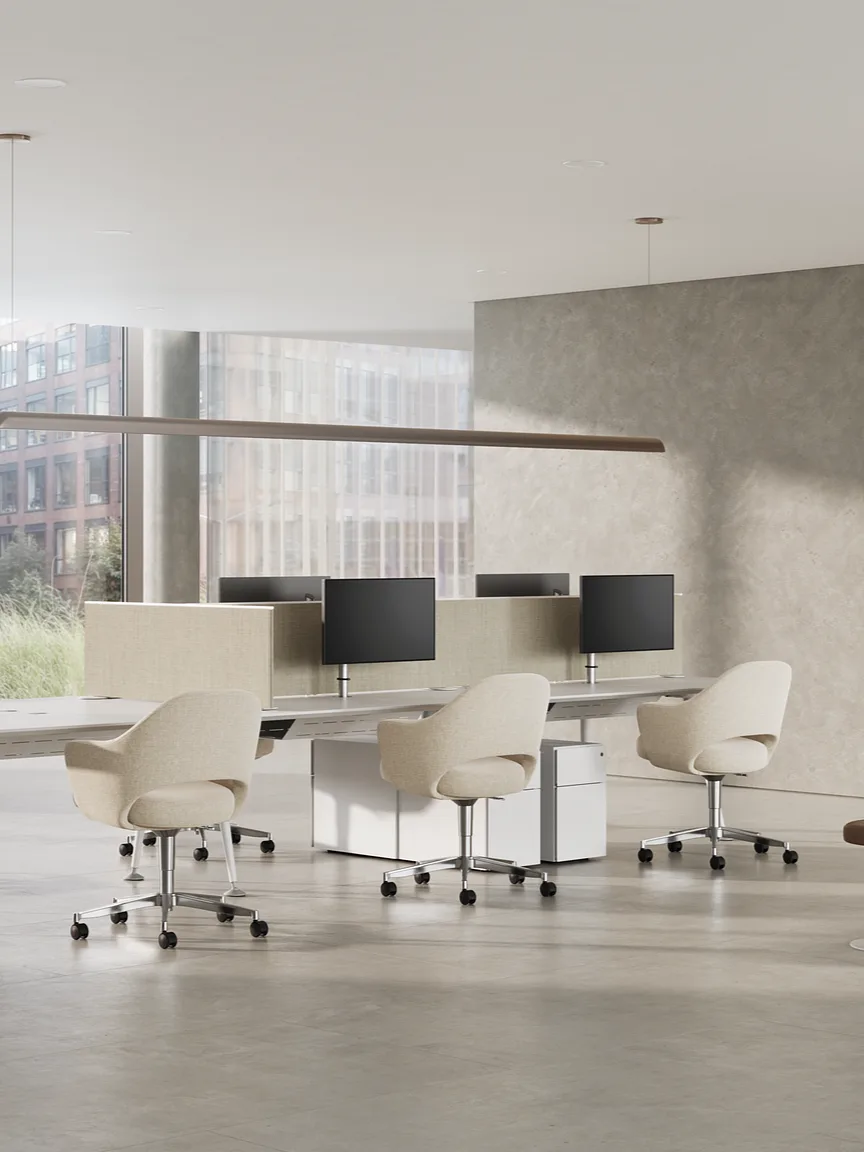 Sada komponent Scope vám umožní vytvořit řešení přesně podle vašich potřeb. Ať už stavíte týmové či zasedací stoly, lineární benching, nebo pracovní místa s prvky pro větší soukromí, Scope umožňuje vytvářet individuální řešení. Jeho univerzální design se zároveň snadno propojuje s dalšími produkty, například s úložnými systémy Knoll Colourfold.