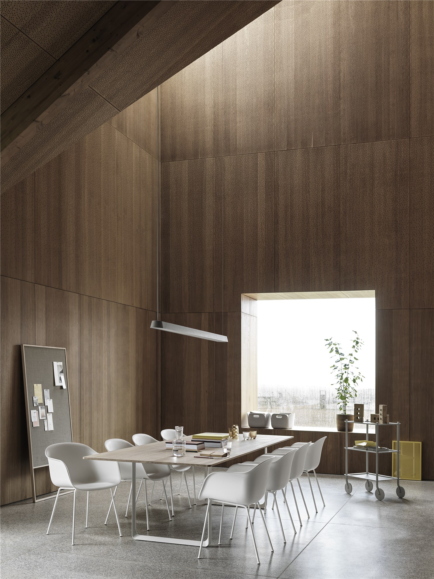 Lineární závěsná lampa je navržena tak, aby vytvořila menší atmosféru ve větších prostorách. Design se vyznačuje elegantními liniemi a jemnými detaily spolu s inherentní funkčností jeho stmívatelného světelného zdroje, což vytváří moderní, funkční světlo pro jakýkoli prostor.