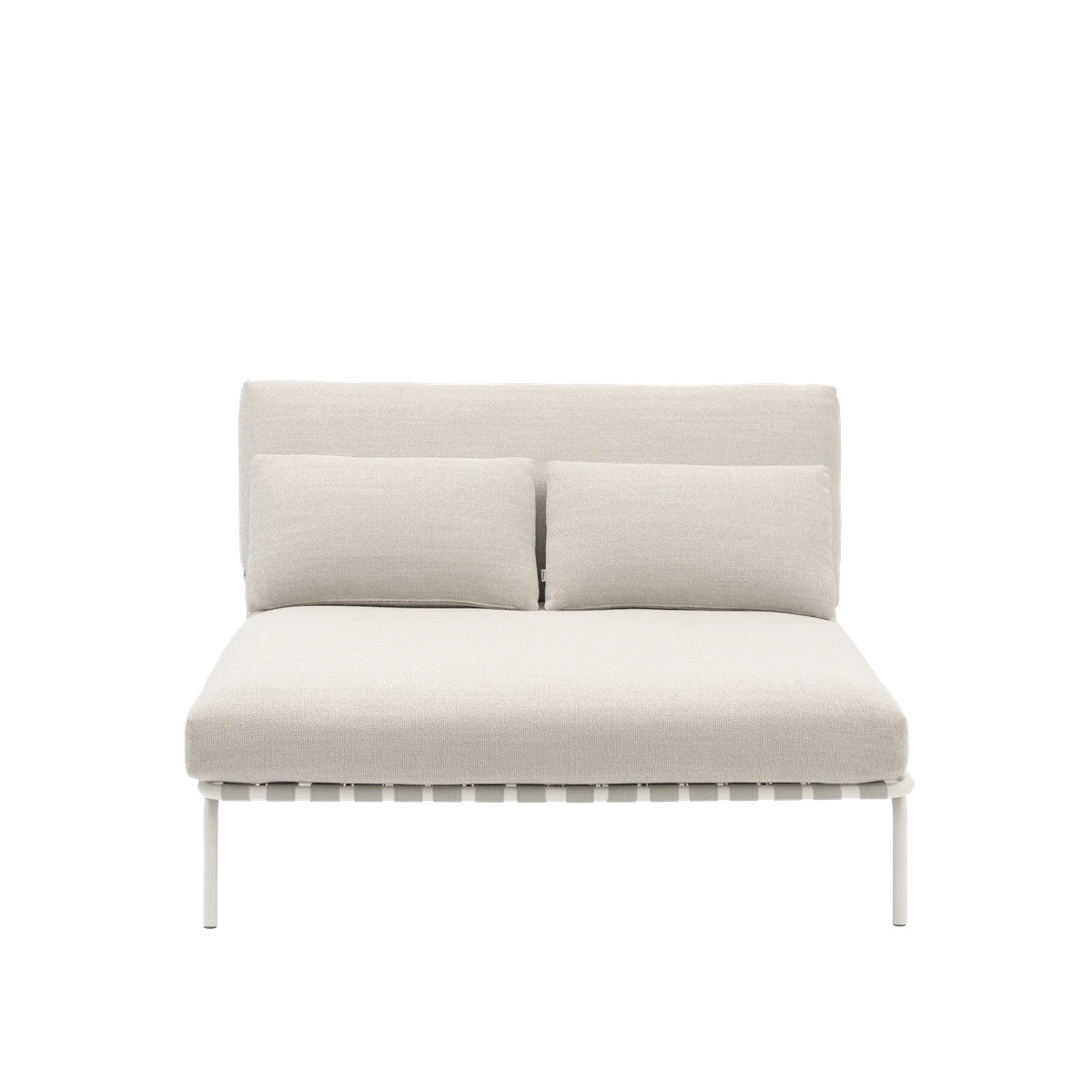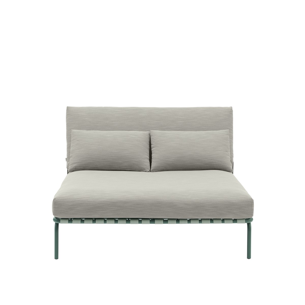 Settle Lounge Bed s područkami vás zve, abyste se ponořili do její pohodlí. Díky hlubokému, nakloněnému opěradlu a přídavnému polštáři pro ještě větší komfort je ideální pro dlouhé, uvolněné chvíle strávené venku. Její vzdušný ocelový rám s viditelnými popruhy a propracovanými detaily působí atraktivně ze všech úhlů, zatímco područky ze dřeva mahagonu s certifikací FSC™ (FSC-C028824) dodávají teplý a příjemný dotek. Ocelový rám Settle je galvanizovaný, opatřený základním nátěrem a práškově lakovaný, což zajišťuje odolnost proti korozi a dlouhou životnost. Měkké polštáře s rychleschnoucí pěnou a odolnými venkovními textiliemi poskytují rychlé vyschnutí při dešti a celoroční trvanlivost při použití s venkovním krytem. Vyrábí se ve verzi s područkami i bez nich.