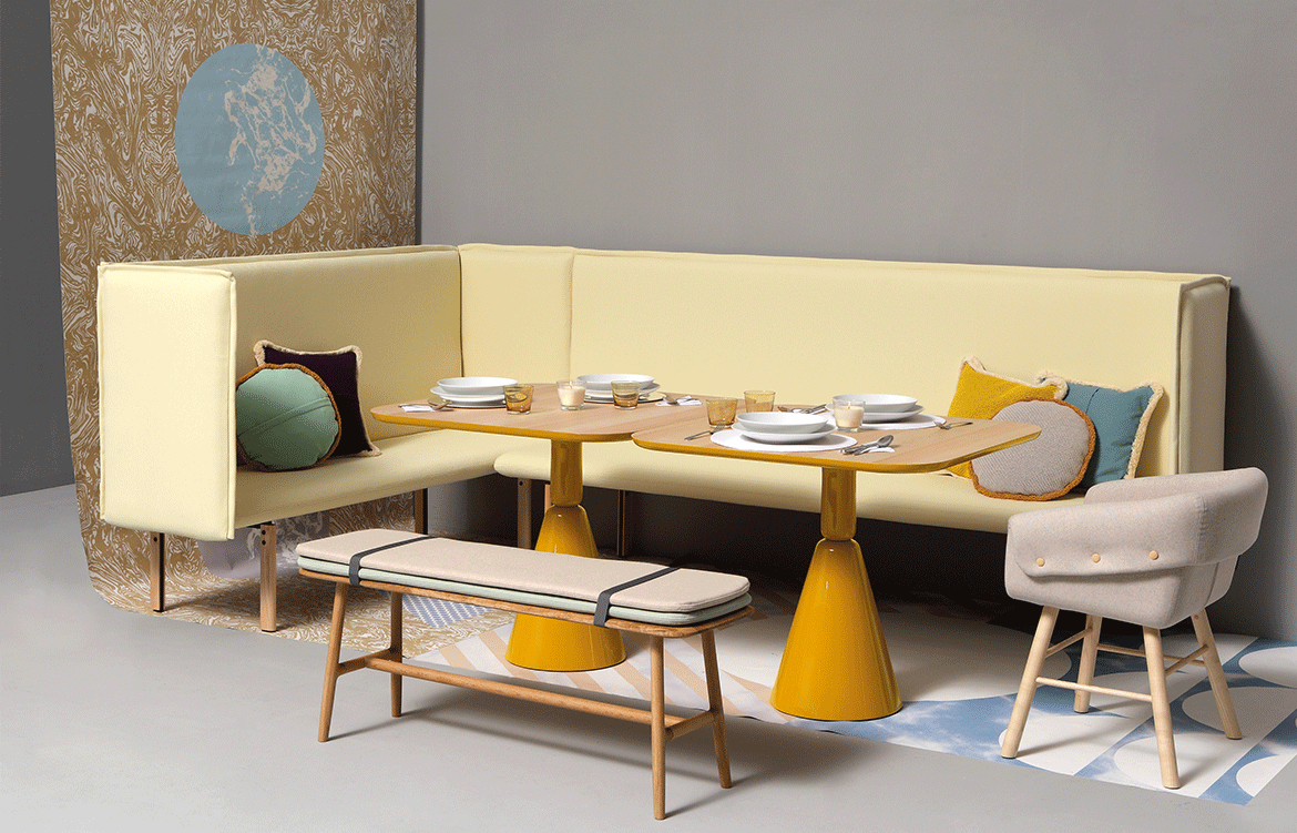 REW je vysoce univerzální řada vhodná pro různé projety: odpočinek (rest), práci (work) i jídlo (eat). Kolekce zahrnuje židle, lavici, pohovky, nově i několik variant polštářů. Nohy jsou vyrobeny z oceli či dřeva a lze je lakovat.