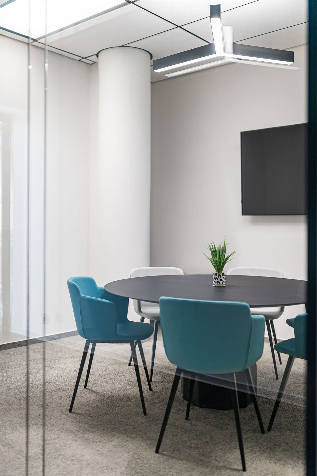 Jsme hrdí, že jsme mohli v rámci tohoto projektu přispět námi nabízenými produkty k modernímu a ergonomicky příjemnému pracovnímu prostředí. Pro pracovní místa jsme dodali výškově stavitelné stoly z naší řady cre8 PUZZLE s kabelovým managementem, doplněné pojízdnými kovovými kontejnery HermanMiller. Jednacími stoly stejné řady cre8 PUZZLE s označením Endow jsou vybaveny i zasedací místnosti. Akustickou a zároveň estetickou i dělící roli plní zavěšené panely ECHOCURTAIN od švýcarské společnosti EchoJazz, která z recyklovaného materiálu PET vyrábí nejrůznější designové produkty vylepšující akustickou pohodu v otevřených místnostech. Akustická je i pohodlná pohovka REW od španělské firmy Sancal. Celkový koncept pak doplňují židle LOTTUS a stolky PUNTO a BURIN také od španělských společností Enea a Viccarbe.