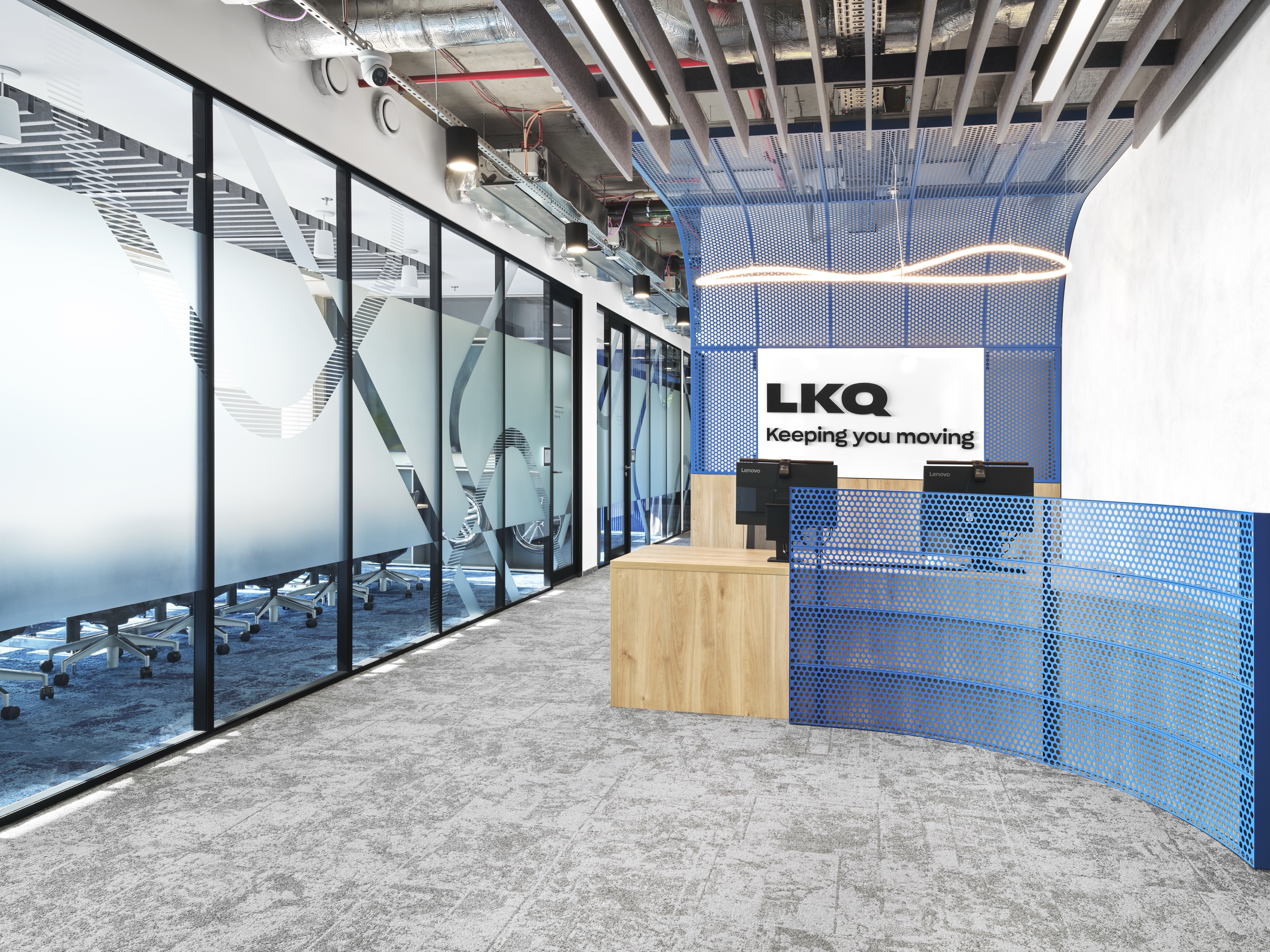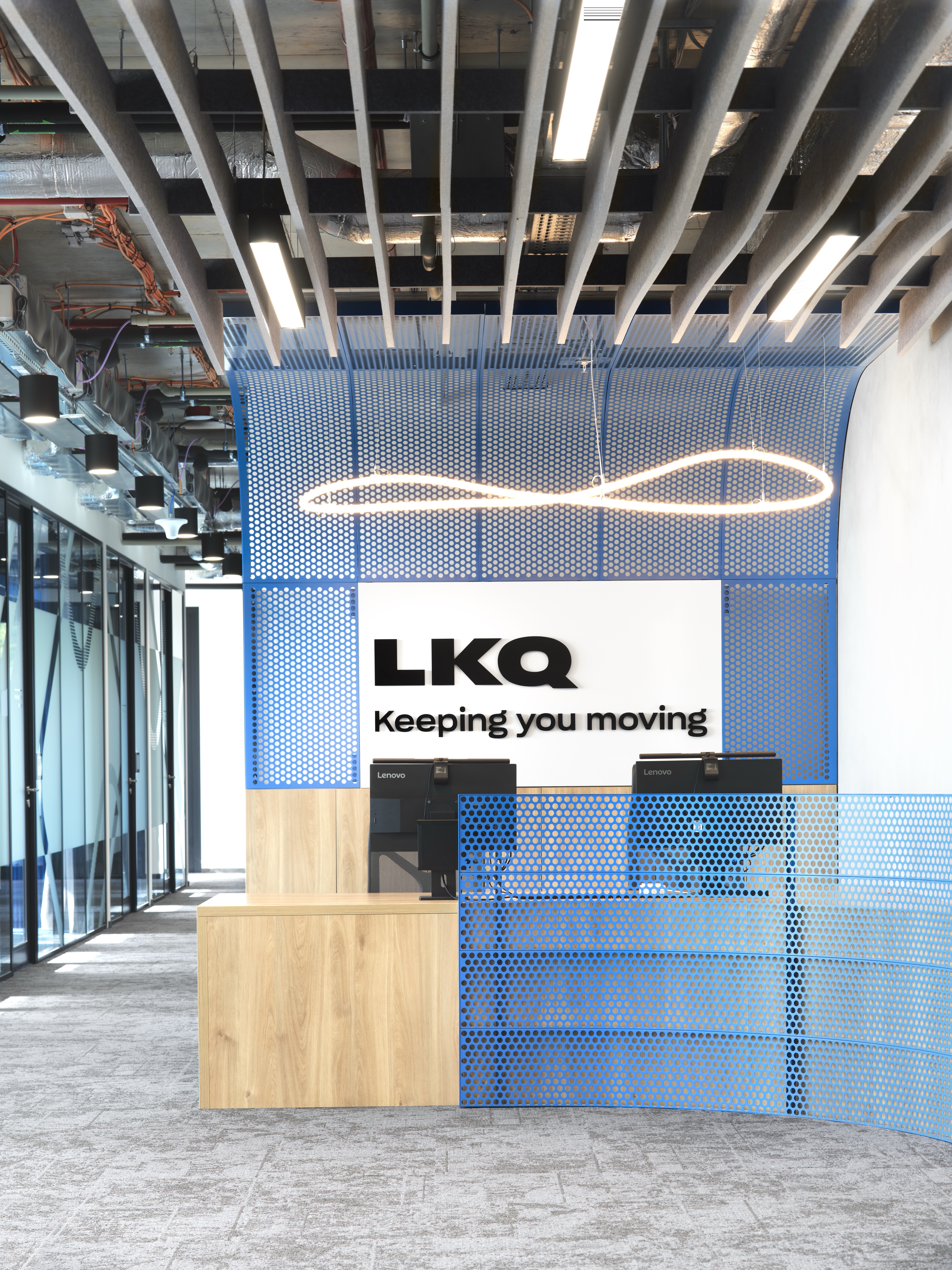 Byli jsme potěšeni, když si nás firma LKQ vybrala jako partnera pro vybavení svých nových prostor v budově AFI CITY v pražských Vysočanech. Pro pracovní místa si klient vybral ergonomické a prodyšné univerzální židle COSM od HermanMiller a výškově stavitelné stoly cre8 HA, doplněné rameny LIMA od CBS s konfigurací pro dva monitory. Vznikla tak top pracoviště splňující nejvyšší požadavky, standardy a trendy v oblasti ergonomie kancelářské práce. Židle COSM pak ve variantě s nízkou zádovou opěrkou byly použity jako špičkové meetingové židle i do zasedacích místností. Jako jedna z prvních v Česku používá firma LKQ také židle FULD Nesting rovněž od HermanMiller, vynikající svým pohodlím, materiálovým provedení a hlavně skladností.
