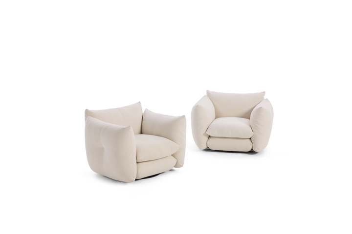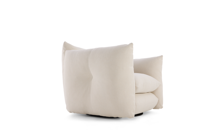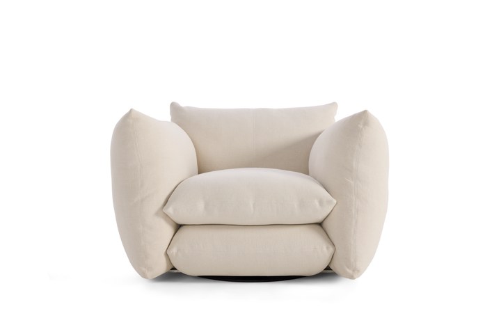 The Perron Pillo Lounge Chair is available as a swivel chair with smooth, 360-degree rotation or a fixed chair with no rotation. Both chairs challenge preconceptions. What appears to be a freestanding stack of oversized pillows is, in fact, engineered to offer lounge-like support for relaxation and conversation. Creating a chair that’s evocative and inviting was integral to designer Willo Perron’s approach. “Everything I do has a bit of humor in it,” he says. “I wanted the chair to evoke surprise and emotion.”