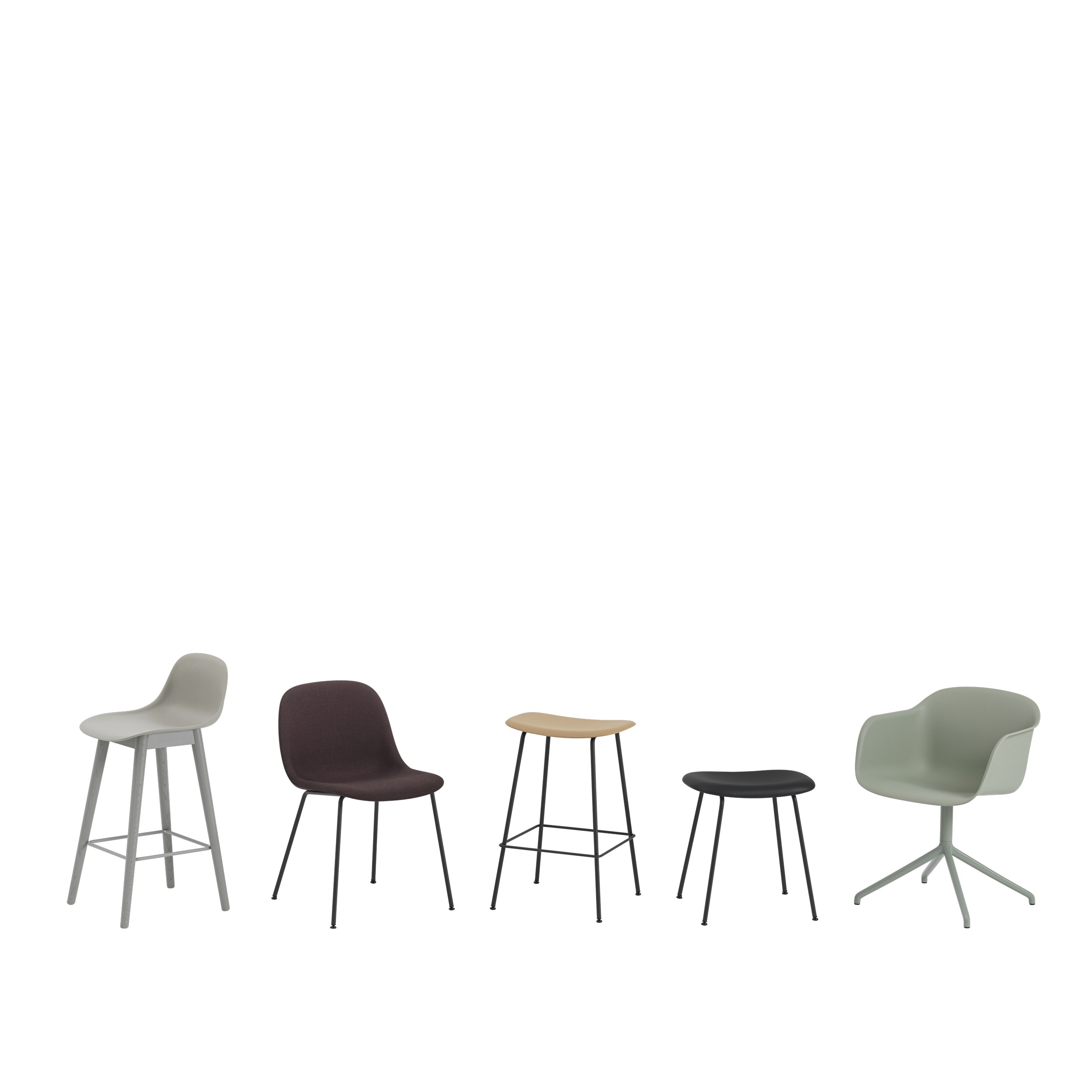 With an expression that is at once comfortable and harmonious, the Fiber Stool is a design with an unobtrusive yet distinct identity. Non-upholstered variants are made from a combination of recycled plastic (min. 80% is recycled) and FSC™ (FSC-C028824) certified wood fibers. The wood fibers blend into the surface for a matte finish and add a soft, inviting touch. The Fiber Stool is designed with friendly, embracing curves that provide extensive comfort to its user while taking up little space in the room. Please note that Fiber Bar Stools with recycled plastic will be available in North America by 2023.
