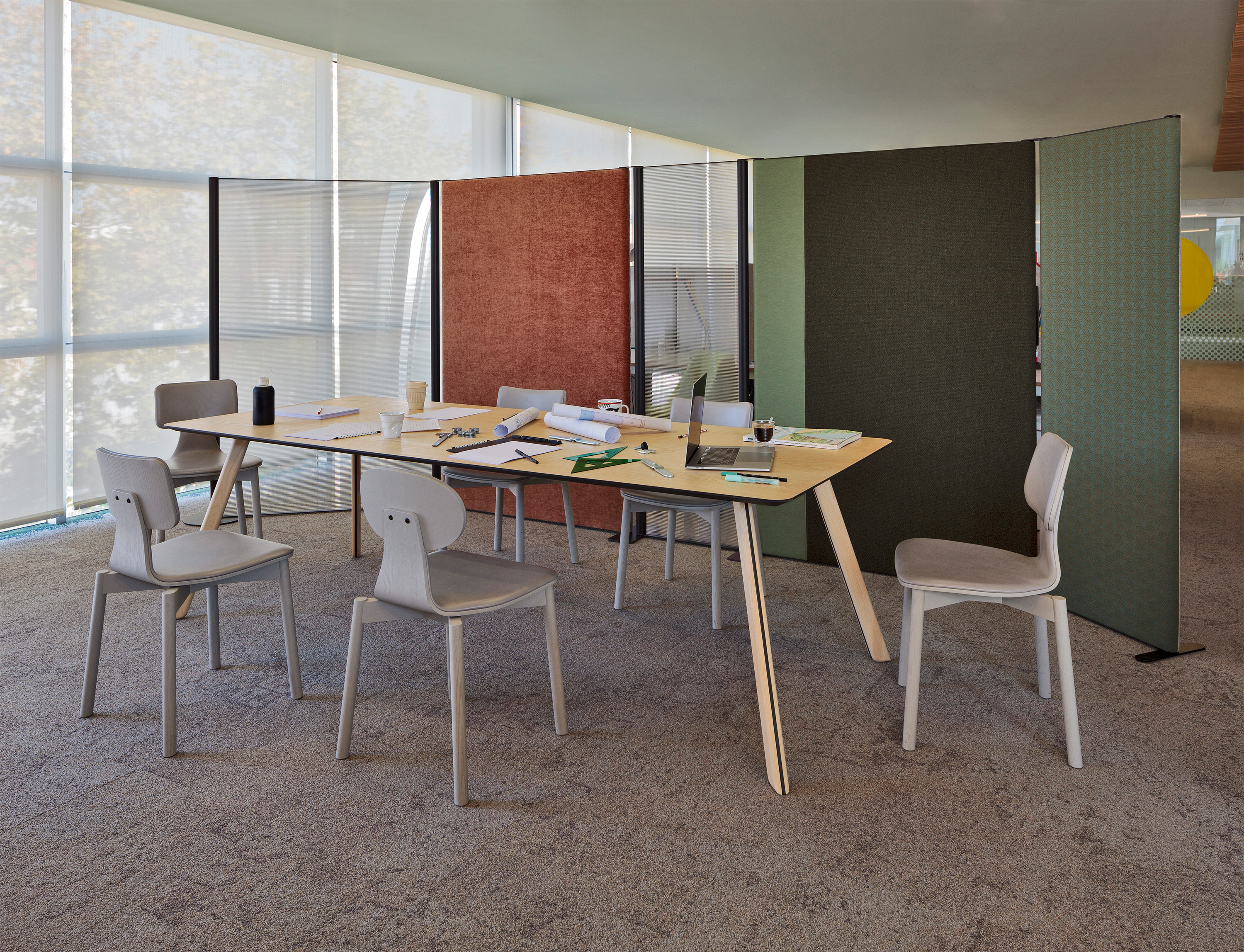 Silla40 is therefore an eclectic piece. It combines an upholstered seat and backrest with an ash base.